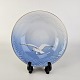 Service i glat porcelæn med skælform i blålige farver og motiv af måger