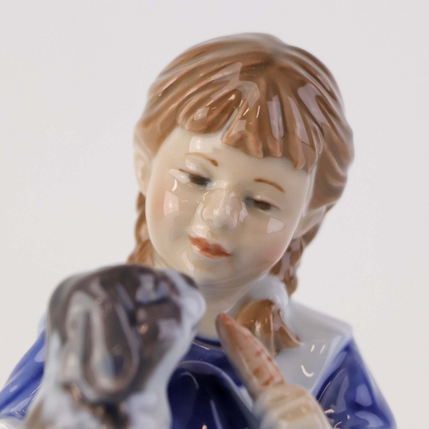 Figur i porcelæn med motiv af siddende ung pige som fodrer sin kanin med en gulerod. Nr. 363