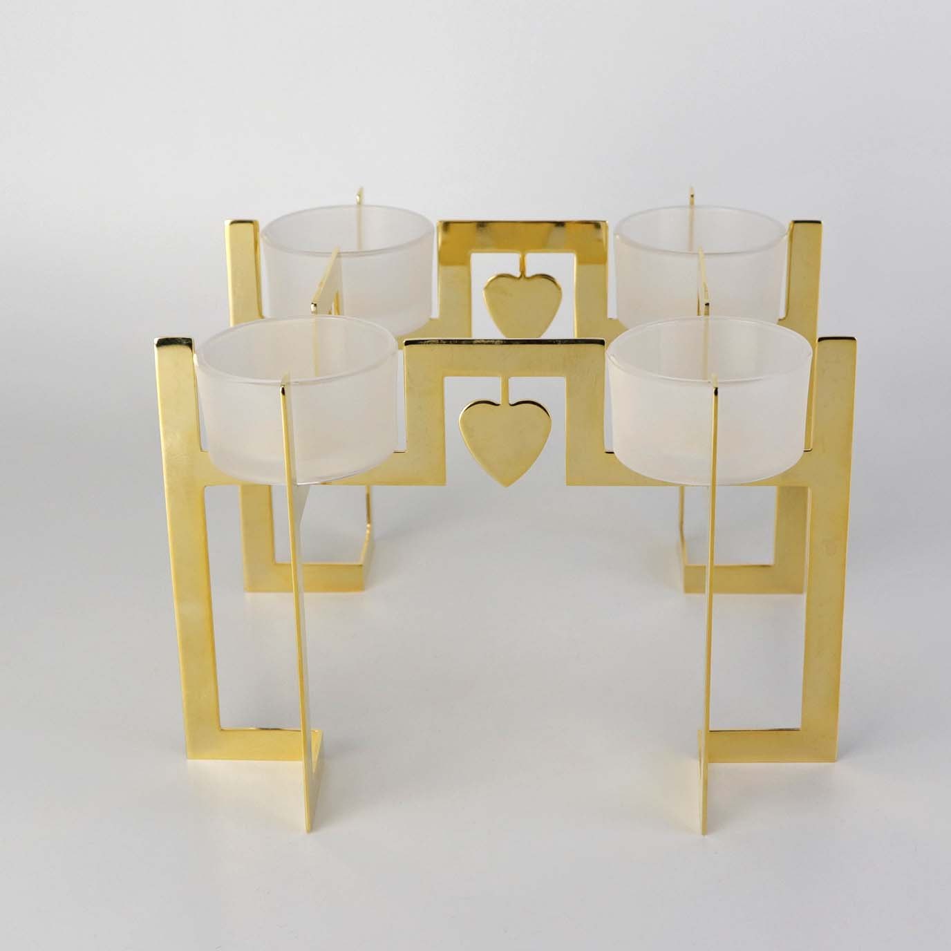 Forgyldt lysestage til advent som kan bruges til både fyrfadslys og kronelys fra serien Golden Christmas. Stagen kommer i original boks.