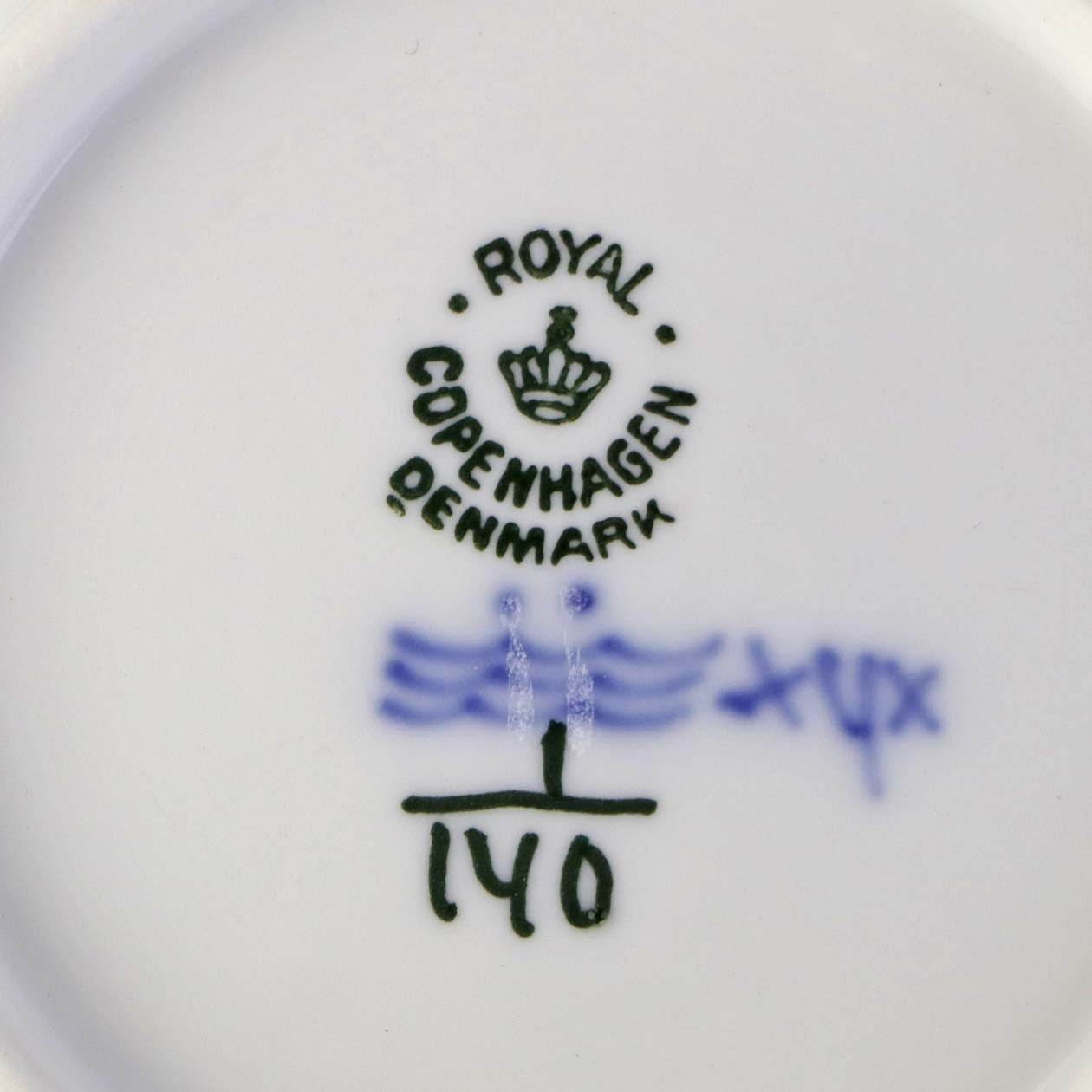 Musselmalet er af kongeligt hvidt porcelæn, dekoreret med rifler og mønster af blå ranker og blomster