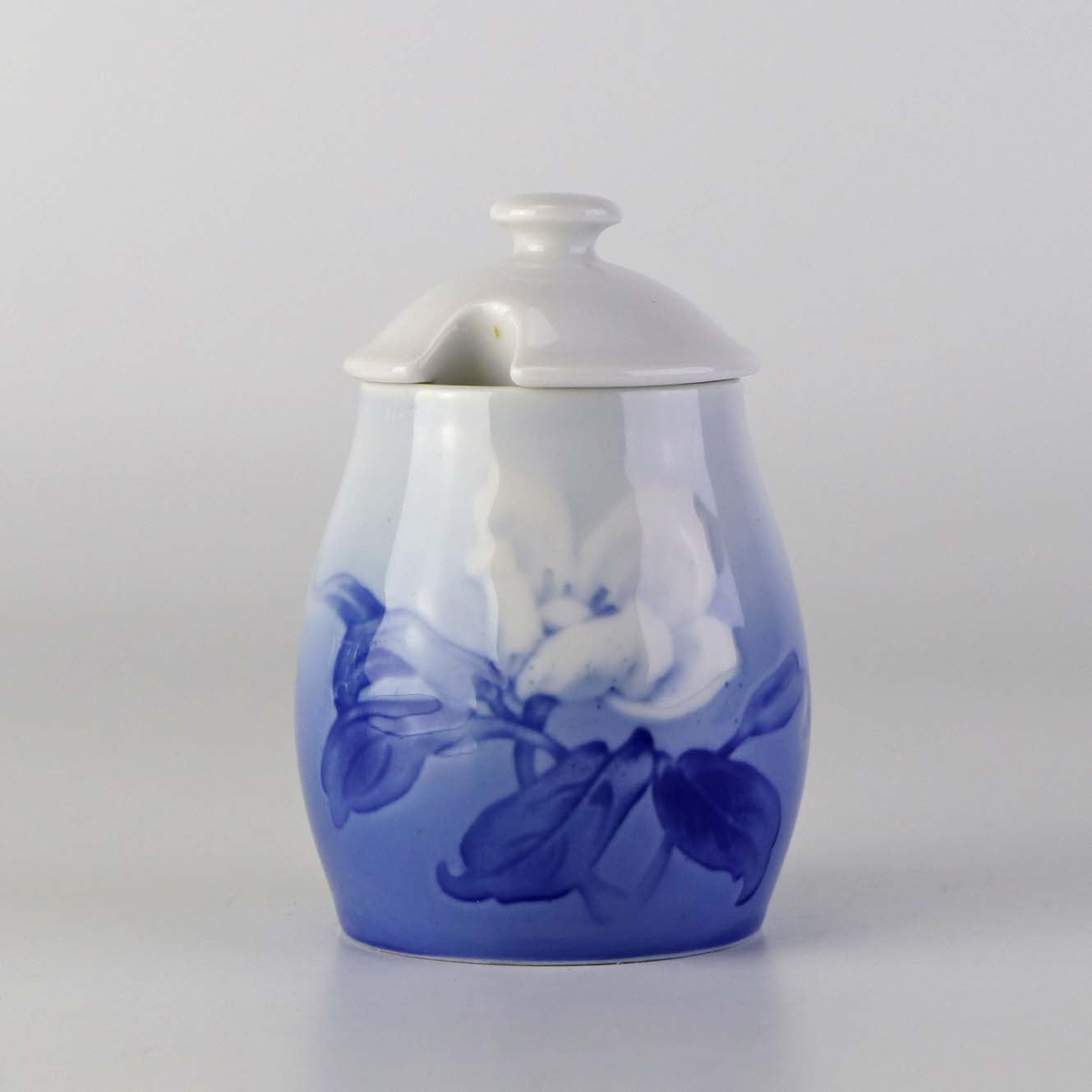 Lågkrukke til sennep i porcelæn fra stellet Julerose. Nr. 62C