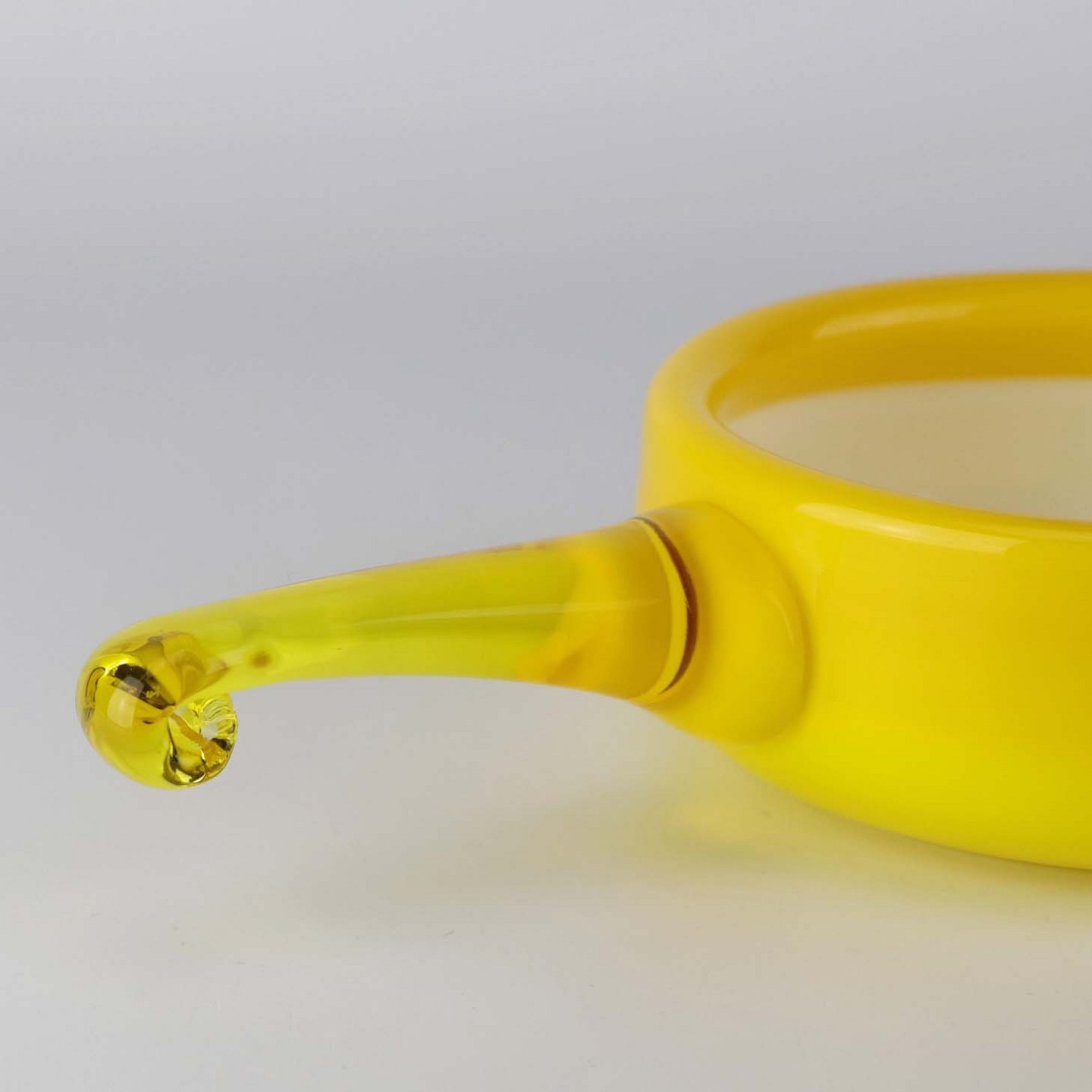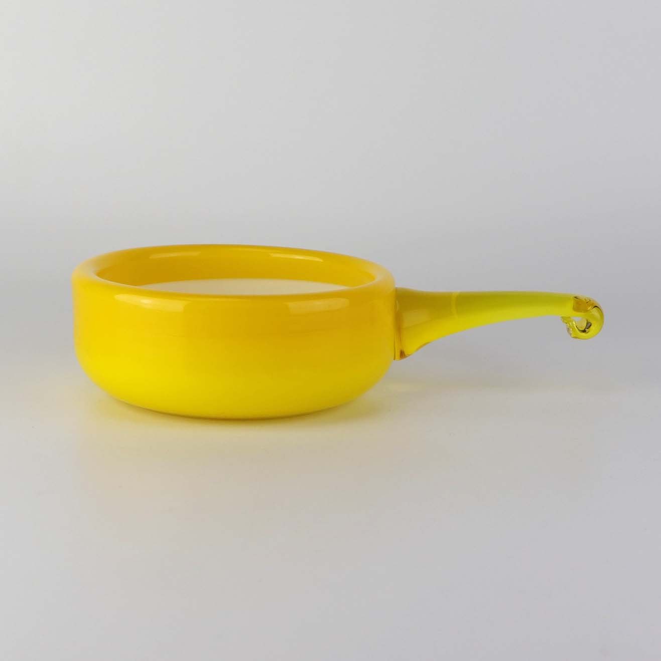 Skål med hank i gult glas med opal hvid inderside fra serien Palet.