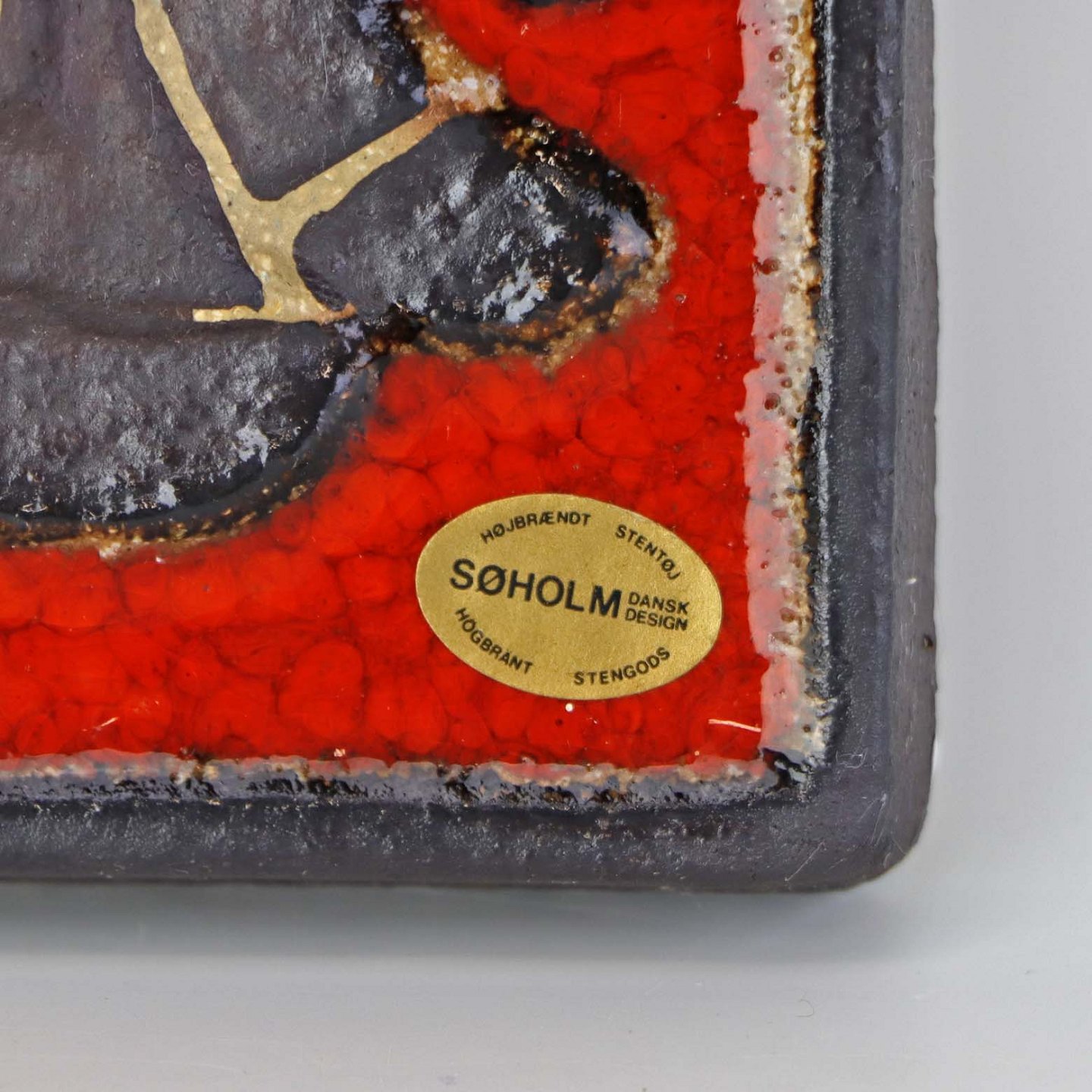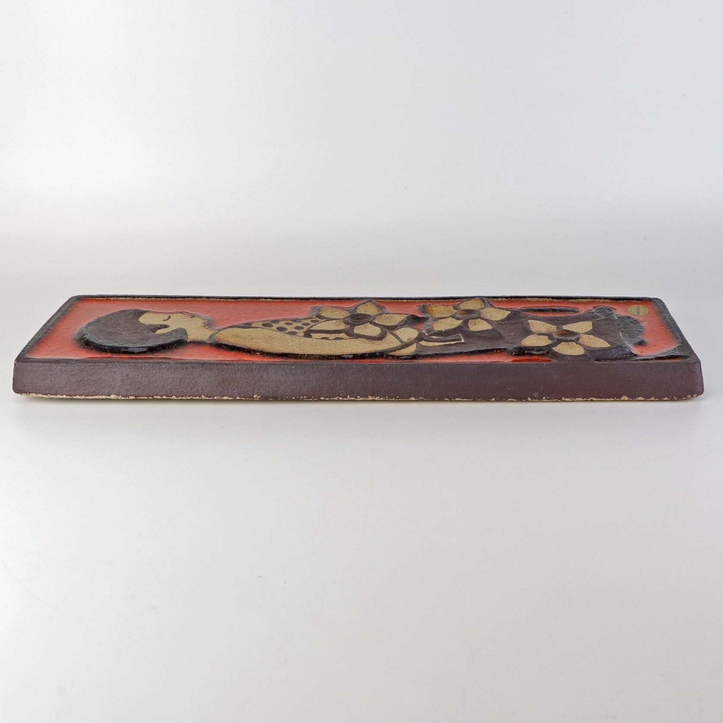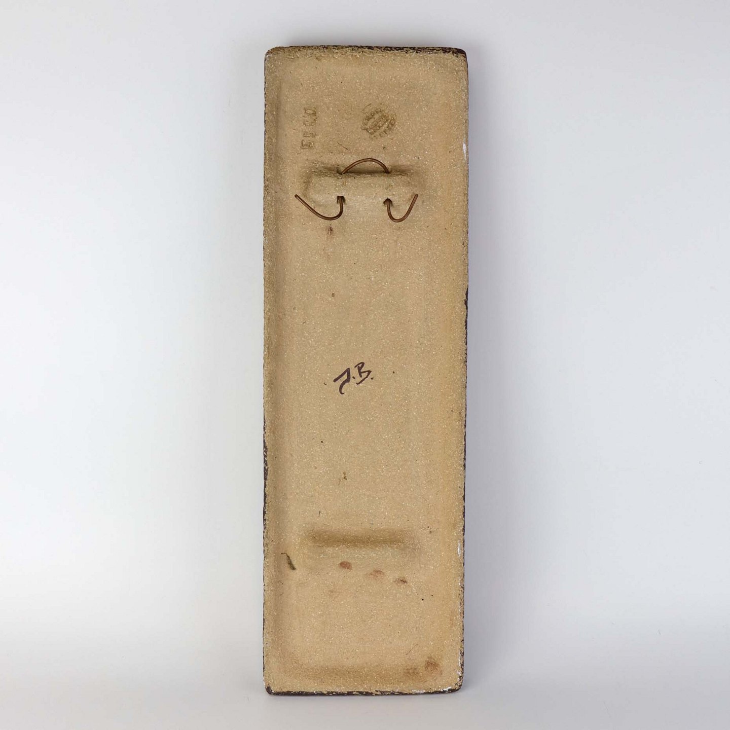 Relief i delvist glaseret stentøj med motiv af et barn med blomster. Nr. 5590