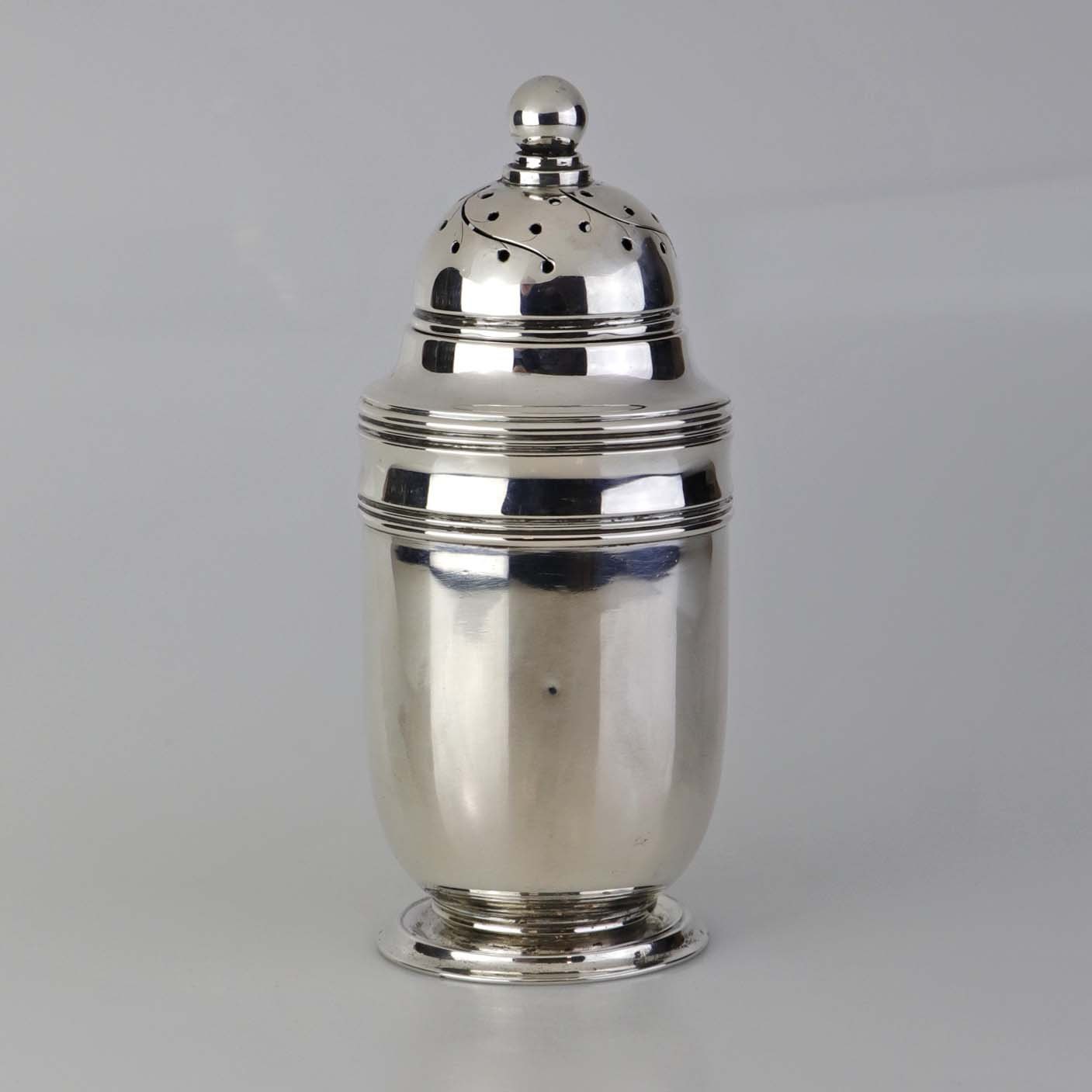 Sukkerstrø i tretårnet sølv med aftageligt låg.