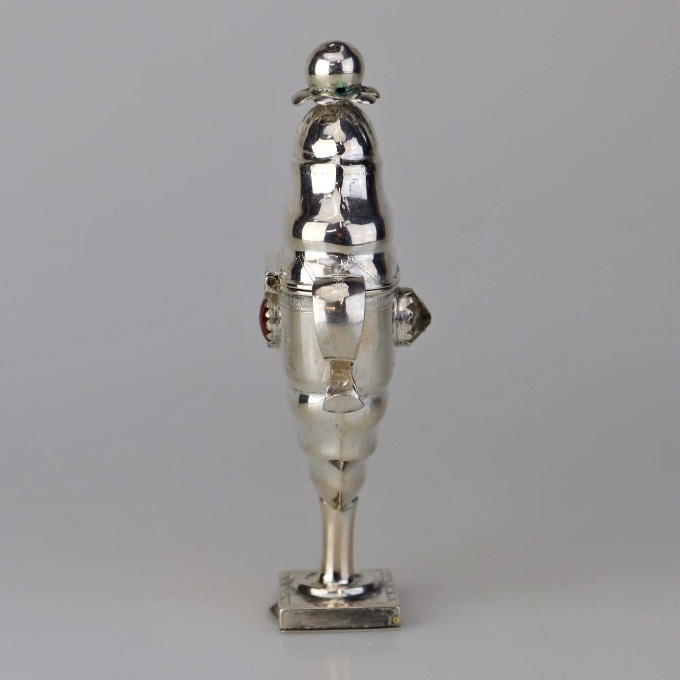 Hovedvandsæg i sølv med pynt af en hvid og en rød sten samt ekstra rum under foden. Fremstår med monogrammer og årstal 1819 samt år 1848