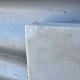 Der er slået to hjørner af bordpladen under bunden og en rød plet ovenpå.
