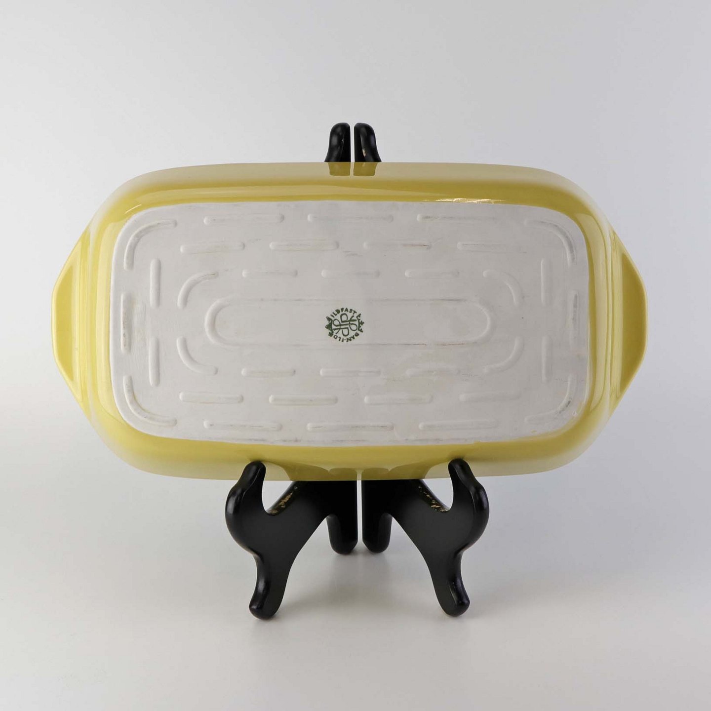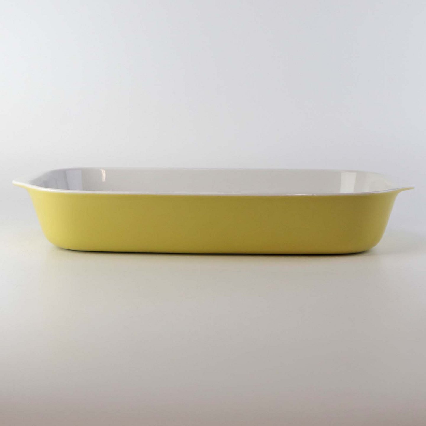 Aflangt ovnfad med hanke i porcelæn fra stellet Gul glasurfarvet.