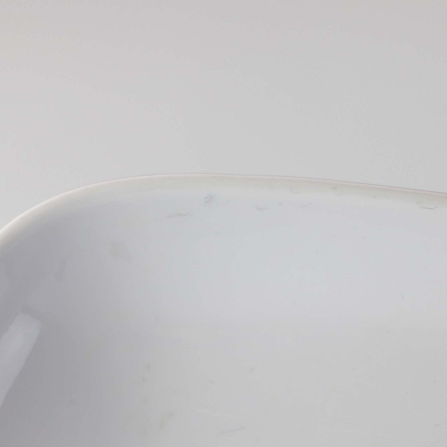 Fremstår mindre brugsspor langs topkanten og mindre glasurfejl under bunden.