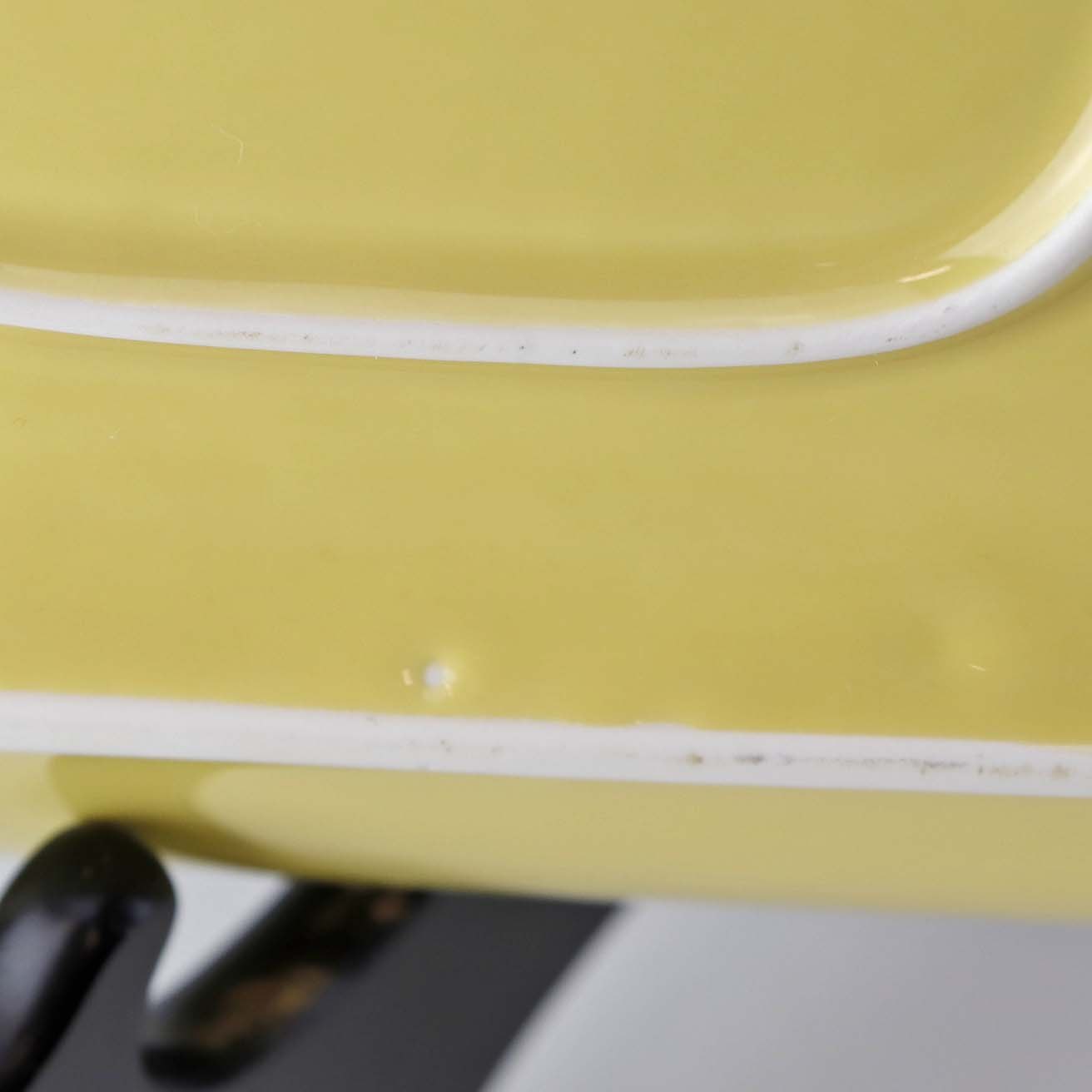Stellet er fremstillet i ildfast glat porcelæn dekoreret med gul glaseret yderside og hvid glaseret inderside.