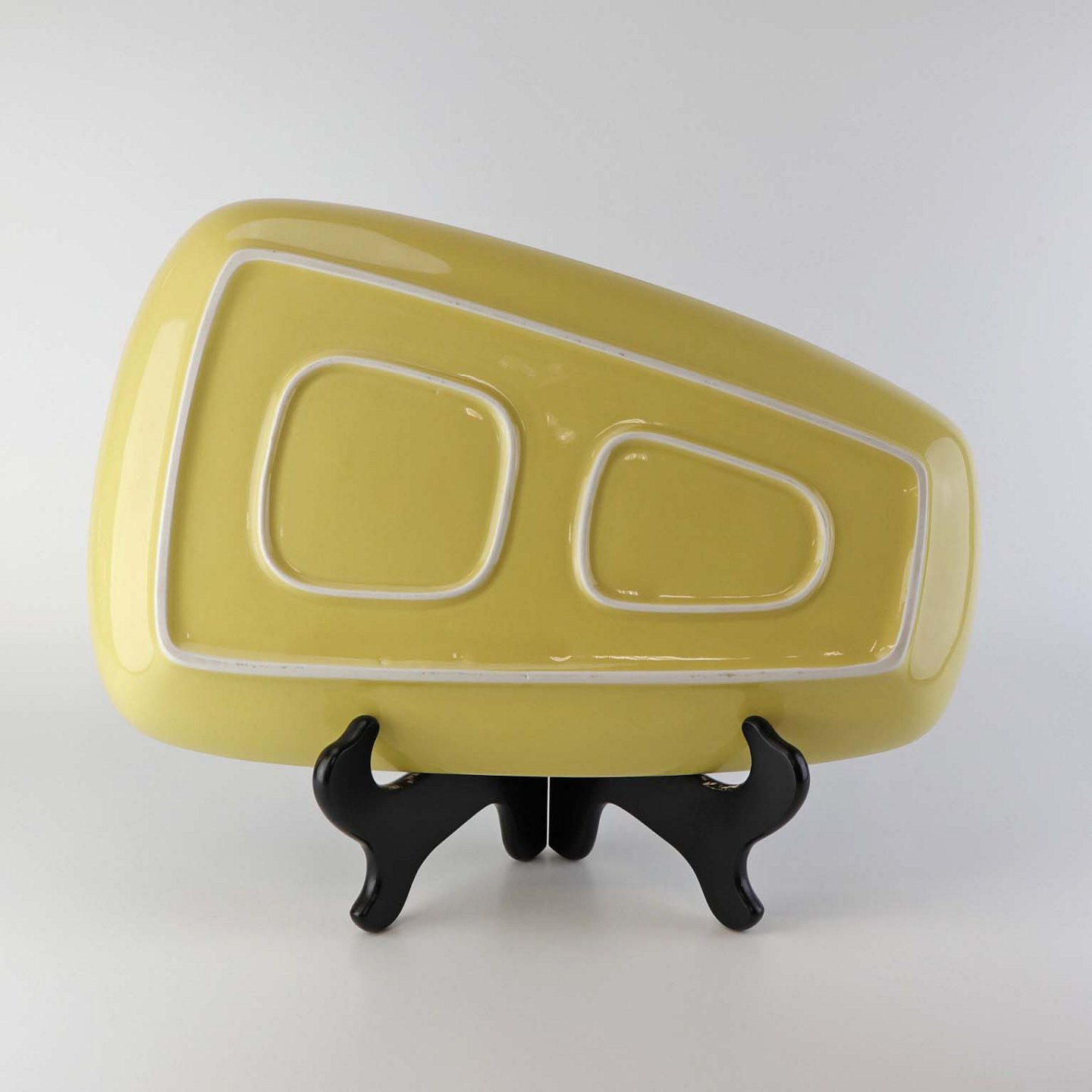 Stort trekantet serveringsfad i porcelæn fra stellet Gul glasurfarvet.