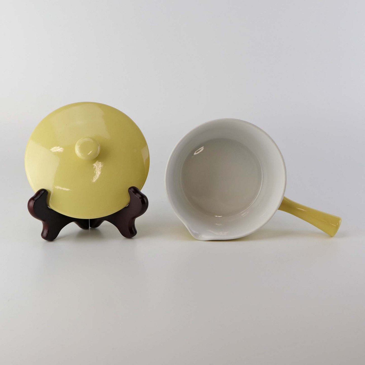 Stellet er fremstillet i ildfast glat porcelæn dekoreret med gul glaseret yderside og hvid glaseret inderside.