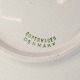 Ældre platte i fajance med teksten Viborg Amt Mejeriforening for 1ste klasses smør 1917 og motiv af fire blæseinstrumenter kaldet lur.