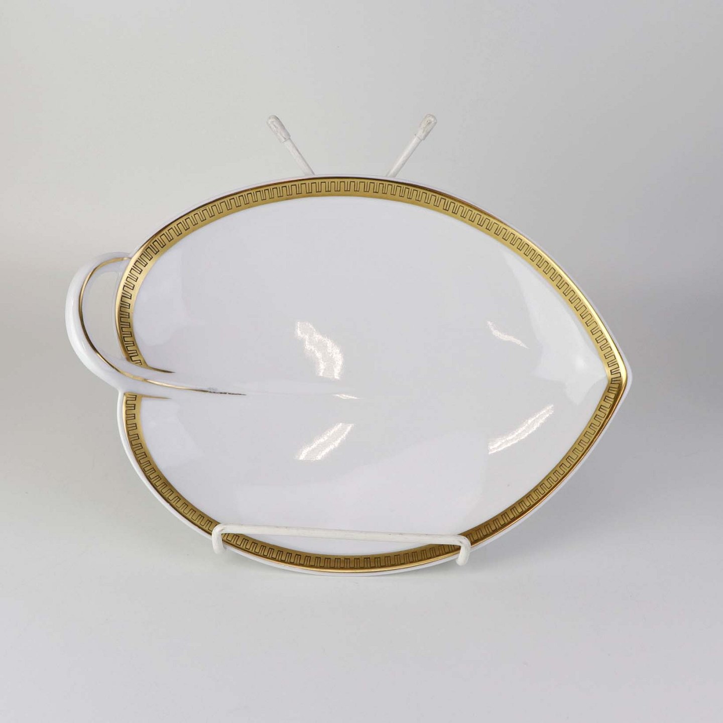 Bladformet fad med hank i porcelæn fra stellet Trend 450
