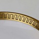 Stel i glat hvidt porcelæn dekoreret med sort streg i guldbort.