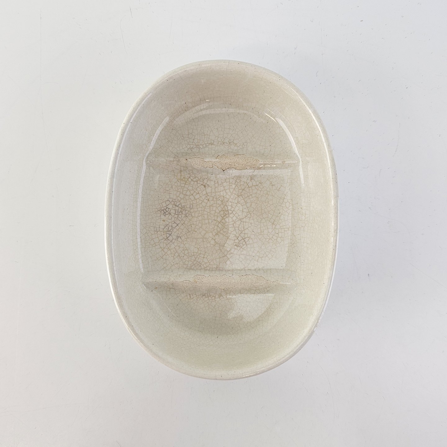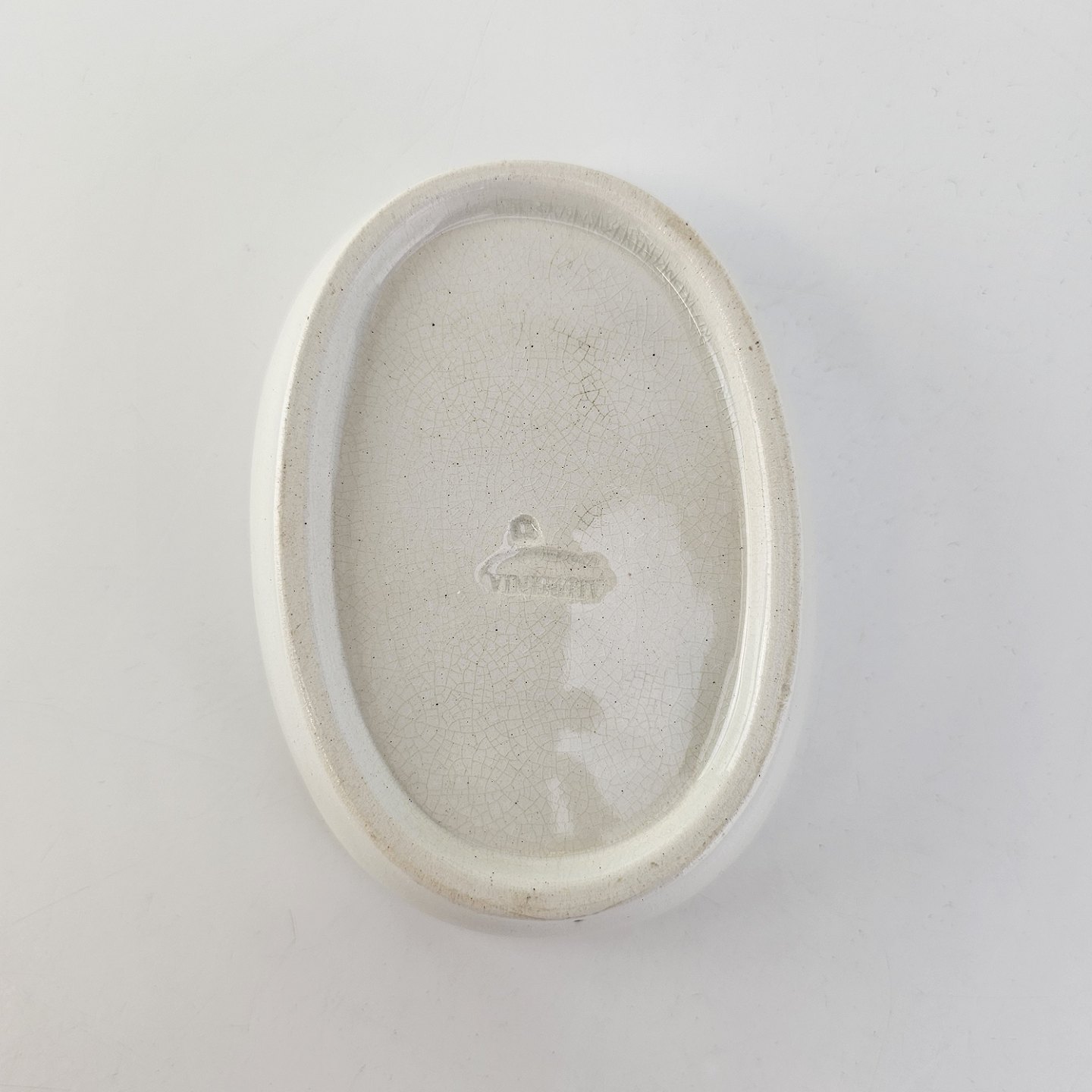Sæbeskål af fajance med motiv af blå violer på låget fra stellet Viol III