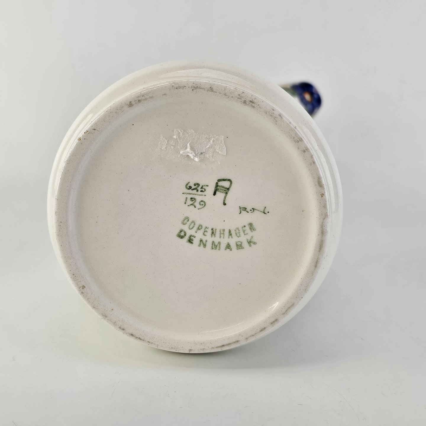 Stellet er i hvid fajance og håndmalet med dekoration af blå violer
