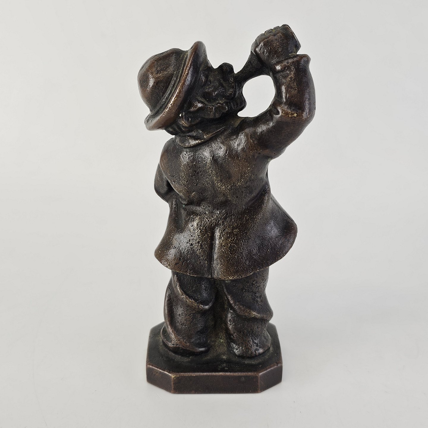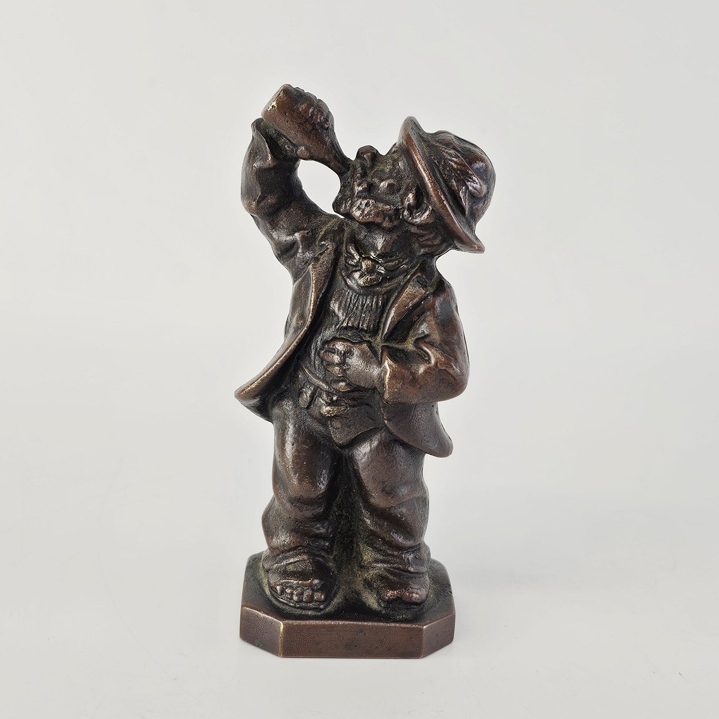 Statuette i bronze med motiv af en mand, som drikker af en flaske