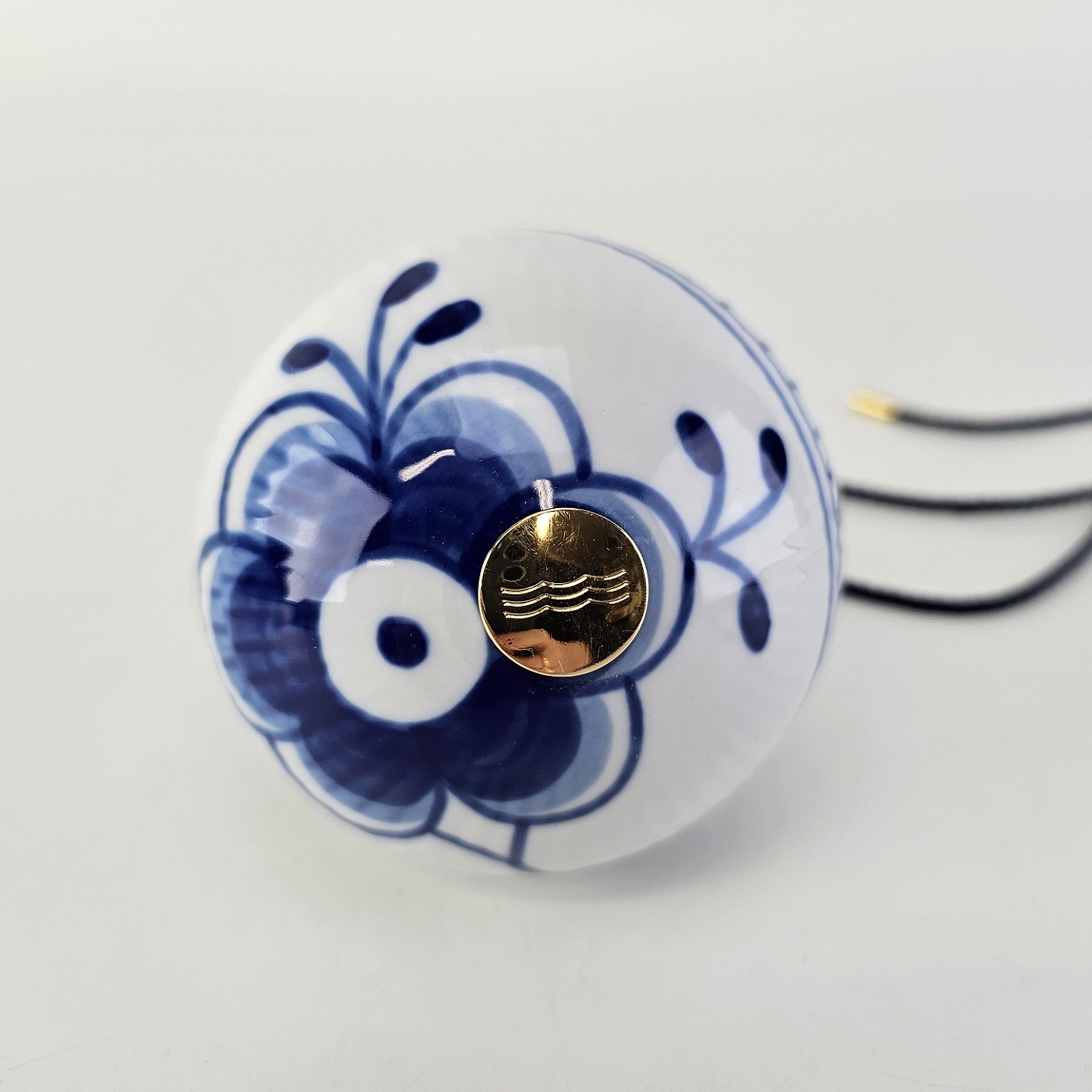 Julekugle af porcelæn med blå mega riflet musselmalet mønster
