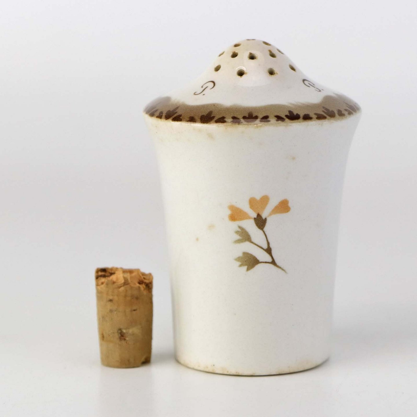 Peber strø i fajance med korkprop fra stellet Convolvulus Snerle.