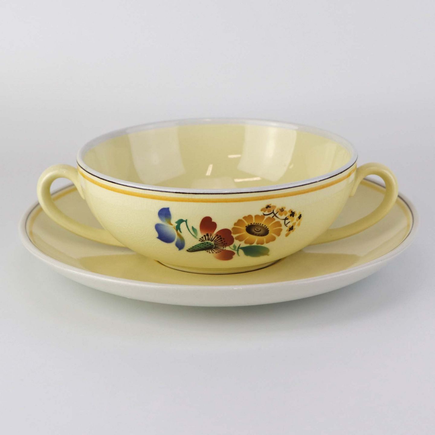 Suppekop med underkop i fajance fra stellet Elisabeth. Nr. 1619