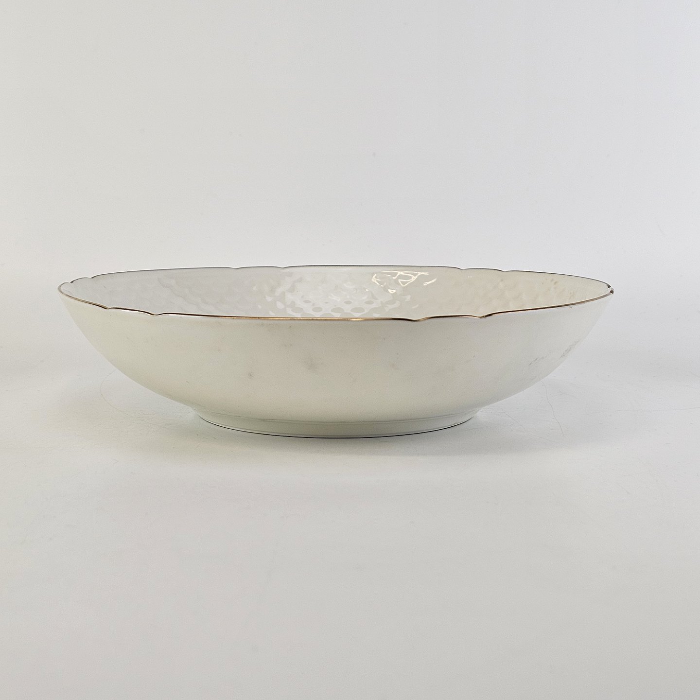 Kaktus er cremefarvet porcelæn i skælform, dekoreret med kaktusblomster og guldkant