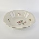 Balder er cremefarvet porcelæn i skælform, dekoreret med hyben og en guldkant.