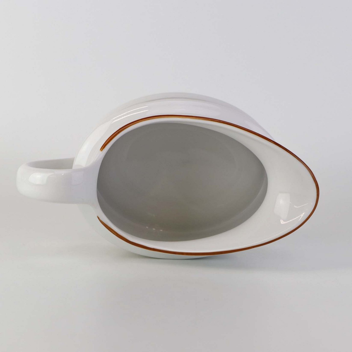Jagtstellet er i glat hvidt porcelæn med gyldenbrun kantdekoration og motiver af forskellige vilde danske dyr i deres naturlige miljø. Stellet er holdt i dæmpede varme efterårsfarver.