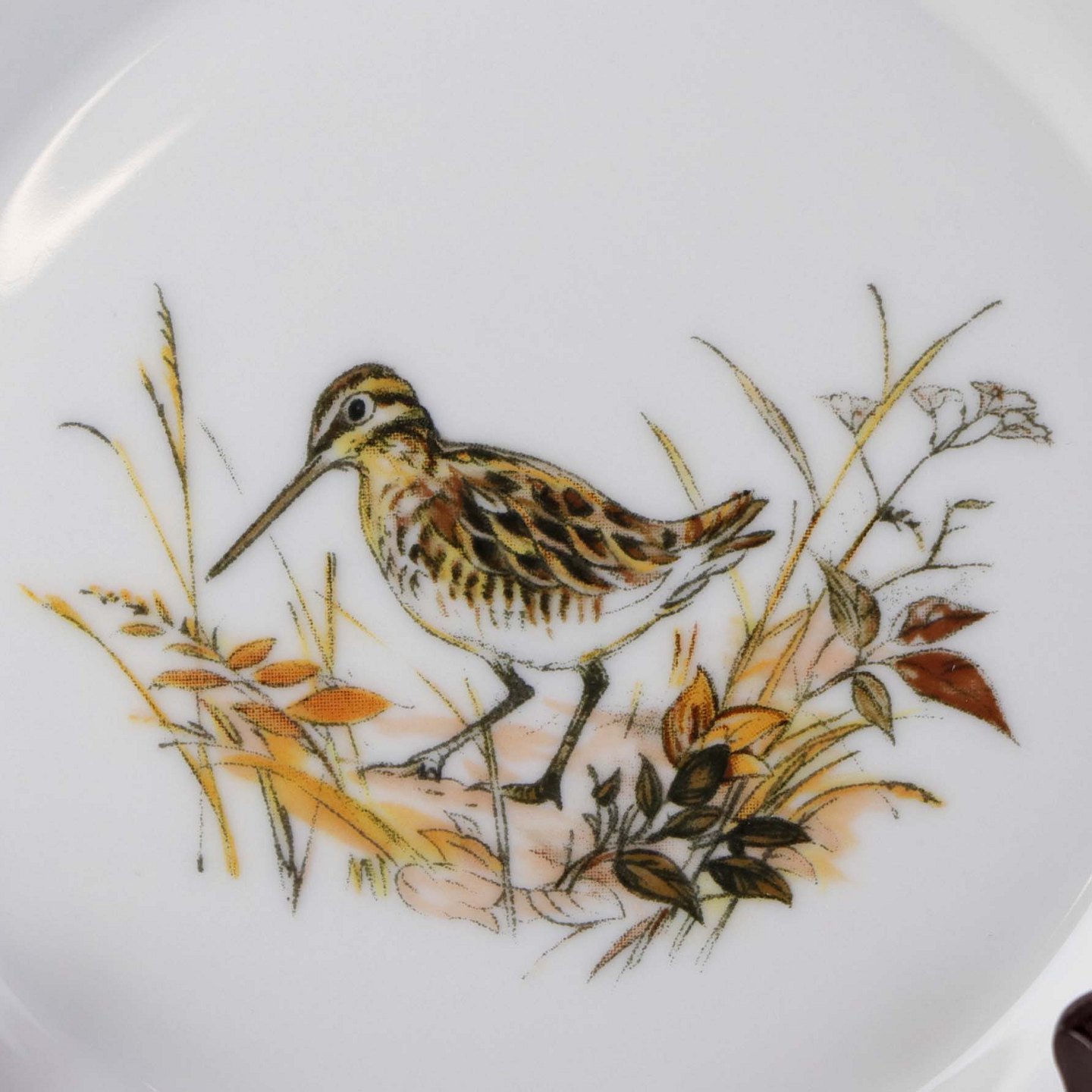 Rund asiet i porcelæn med motiv af en sneppe fra stellet Jagtstel.