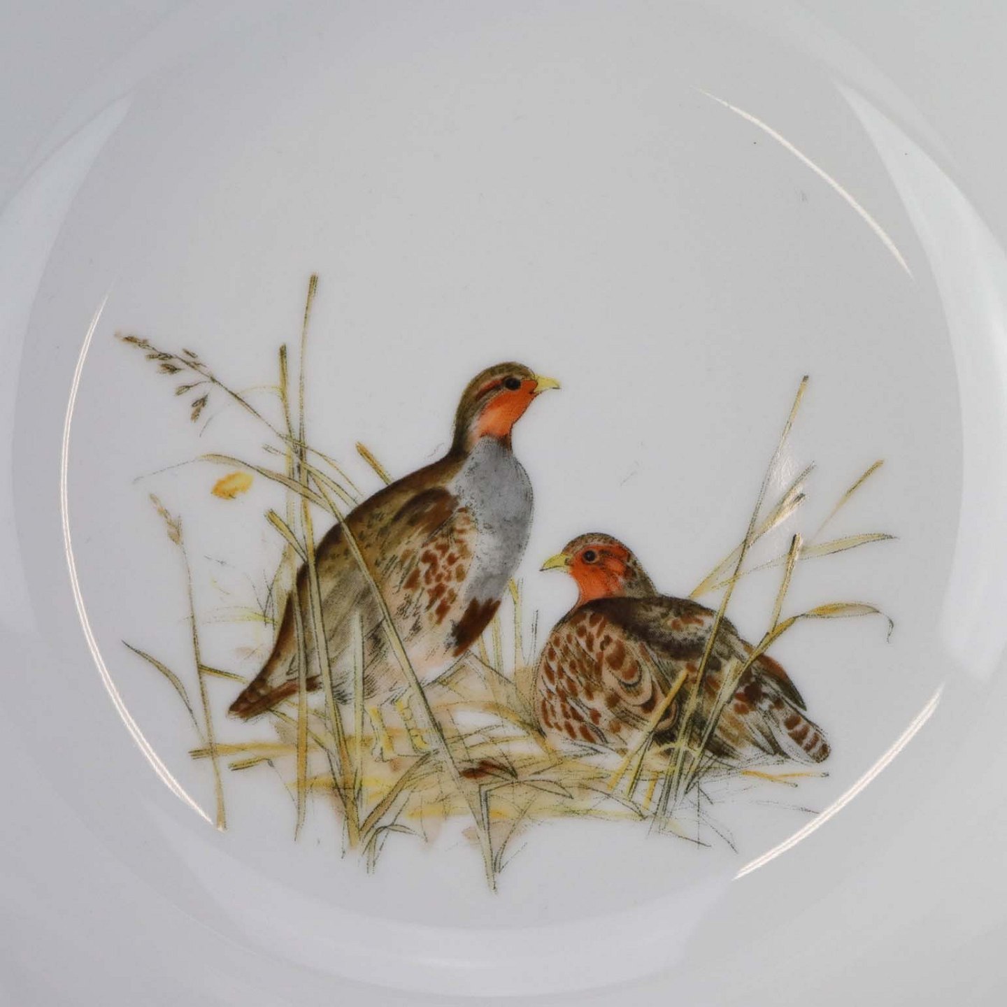 Rund skål til kartofler i porcelæn med motiv af agerhøns fra stellet Jagtstel.