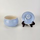 Service i lyseblå fajance dekoreret med hvid kant