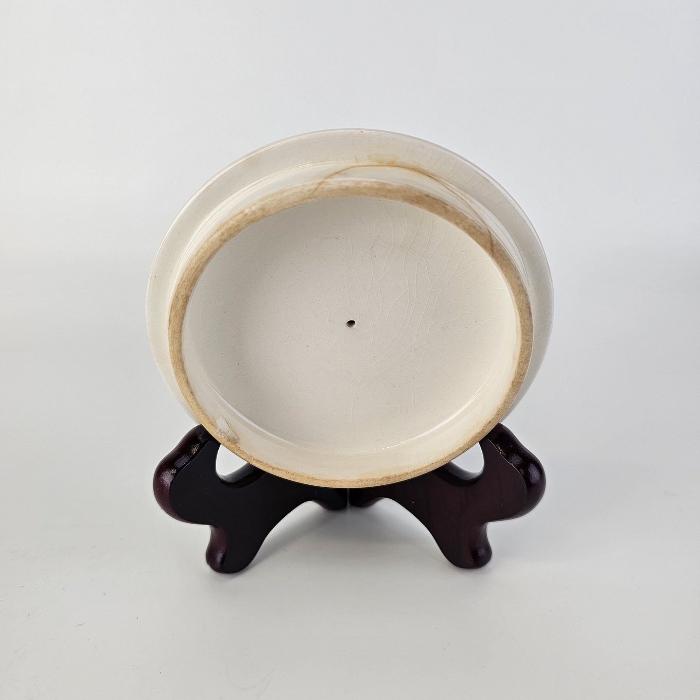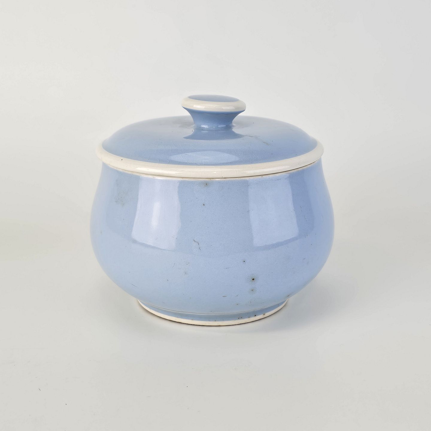 Fremstår med krakeleringer i glasuren og reparation af en overfladisk revne i låget