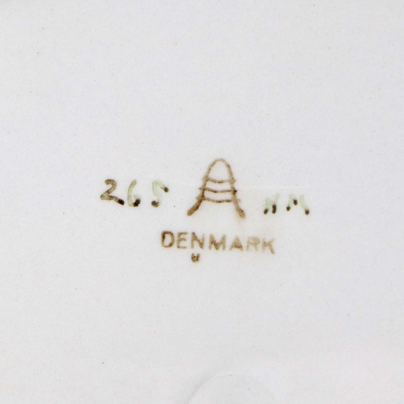 Fremstår med mindre ridse i glasuren i bunden samt ujævnhed i glasuren på bagsiden.