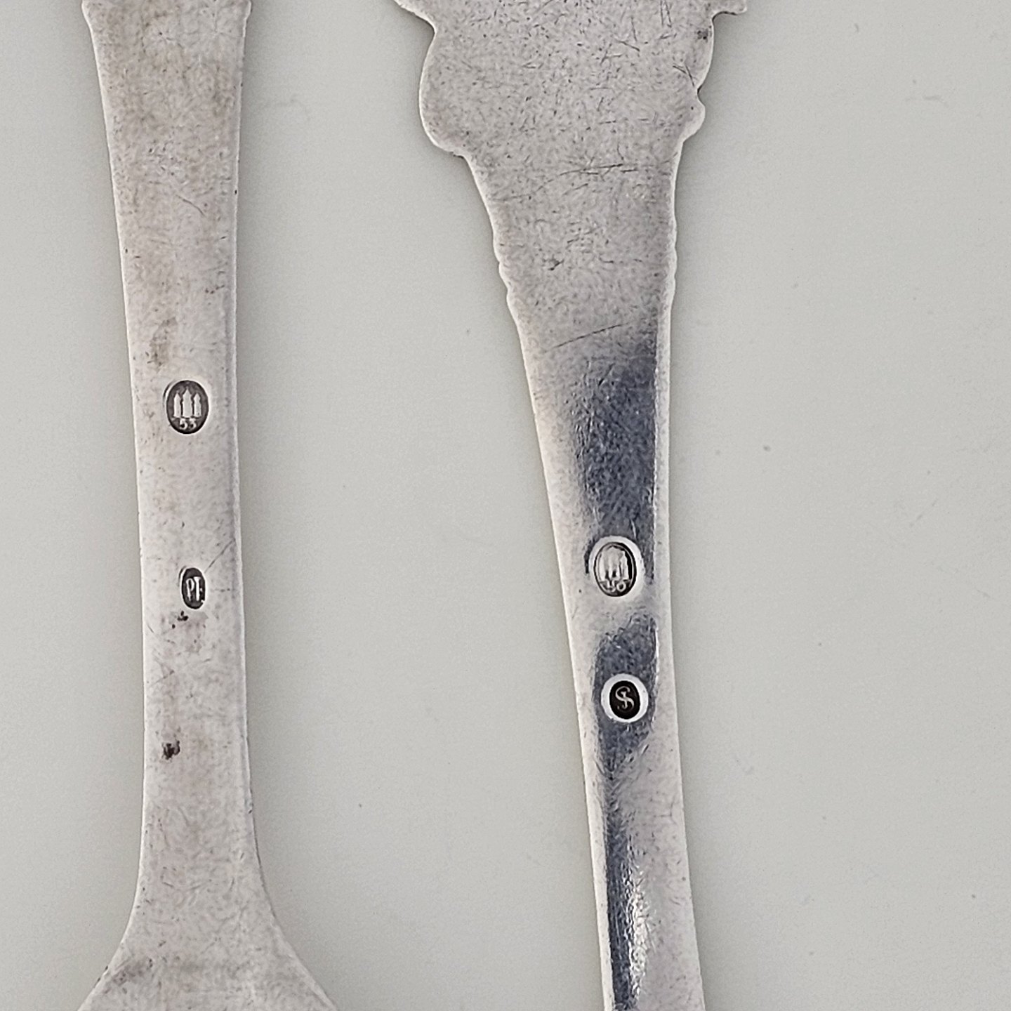 Gaffel og ske i tretårnet sølv med motiv af Ole Lukøje
