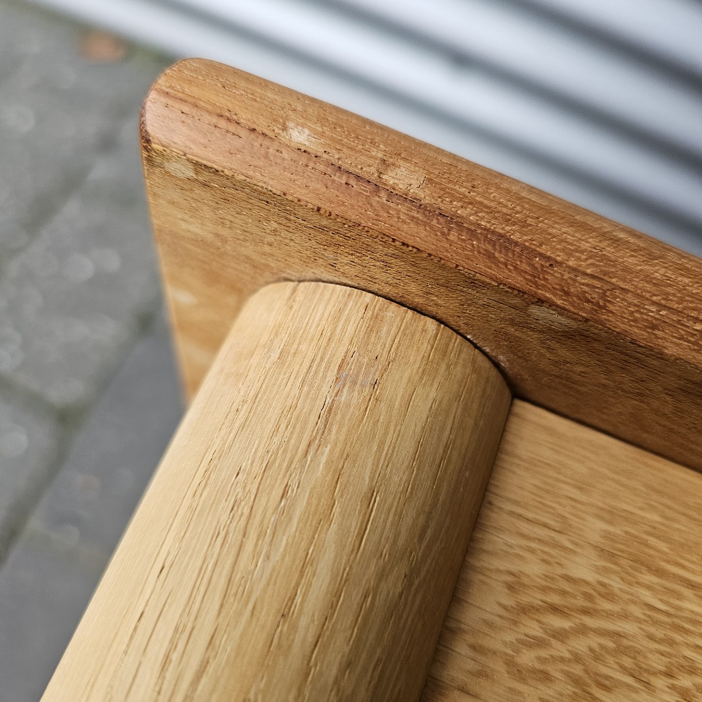 Skrivebord i egetræ med stor skuffe og lås, også kaldet dameskrivebord