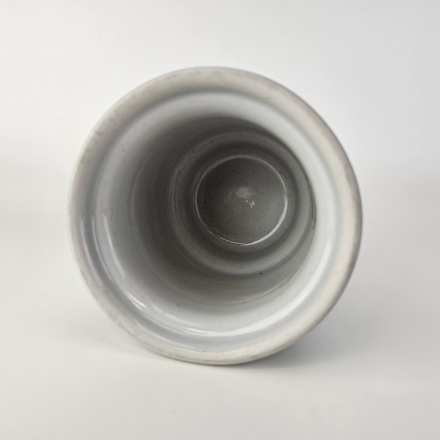 Krukke i glaseret stentøj med dekoration af tre blå striber