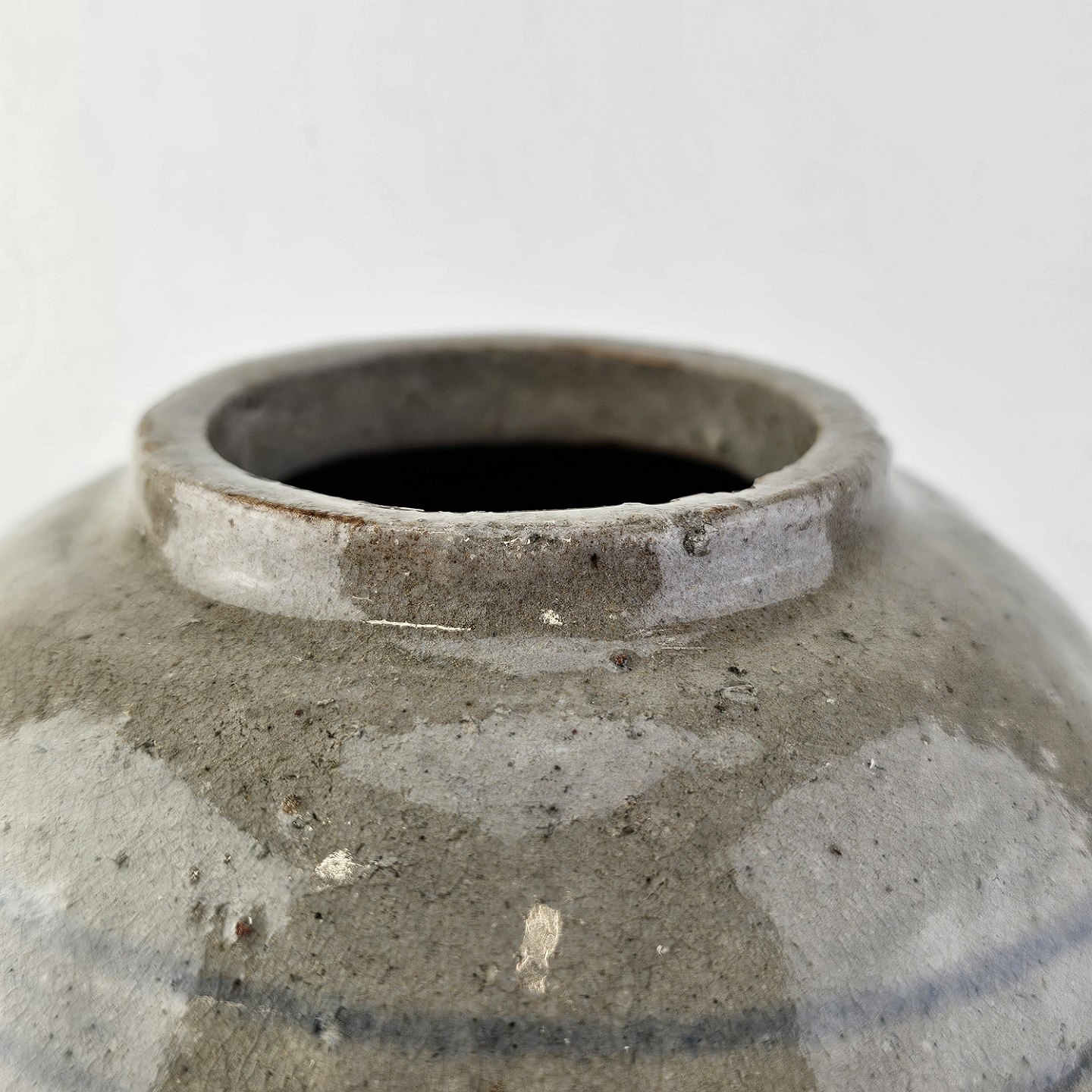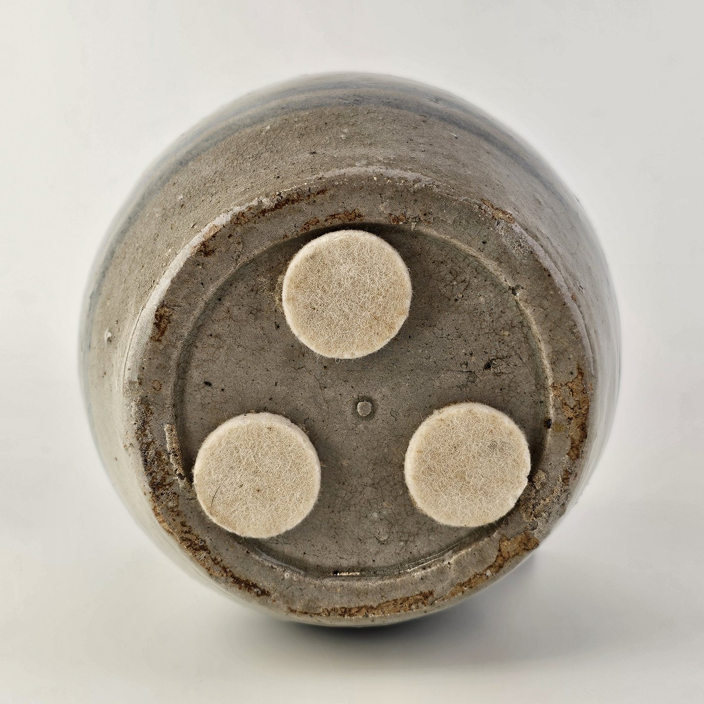 Vase i oval kugleform med grå glasur