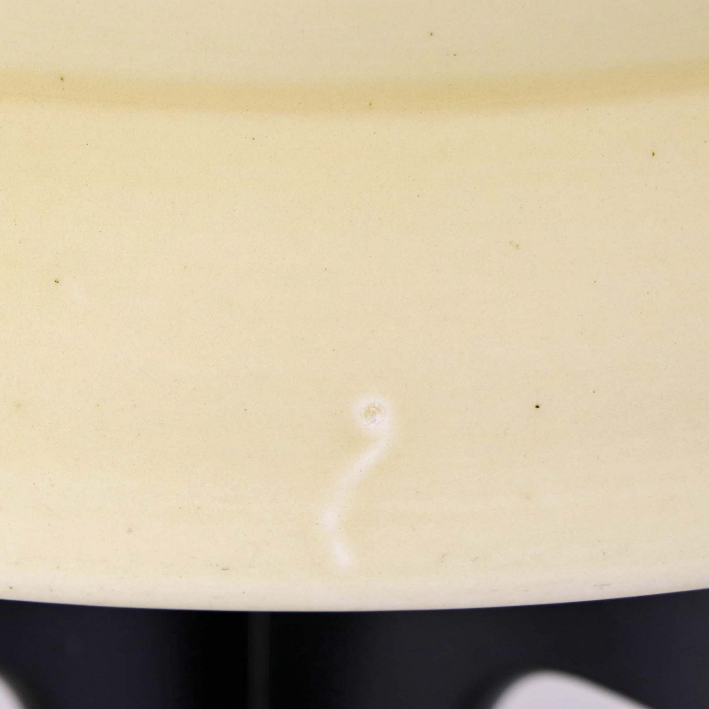 Fremstår med brugsspor på dekorationen samt mindre misfavning i glasuren på bagsiden.