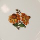Fajancestel i stelform G med dekoration af orangegule blomster og grønne guirlander på lys baggrund med brun kant.