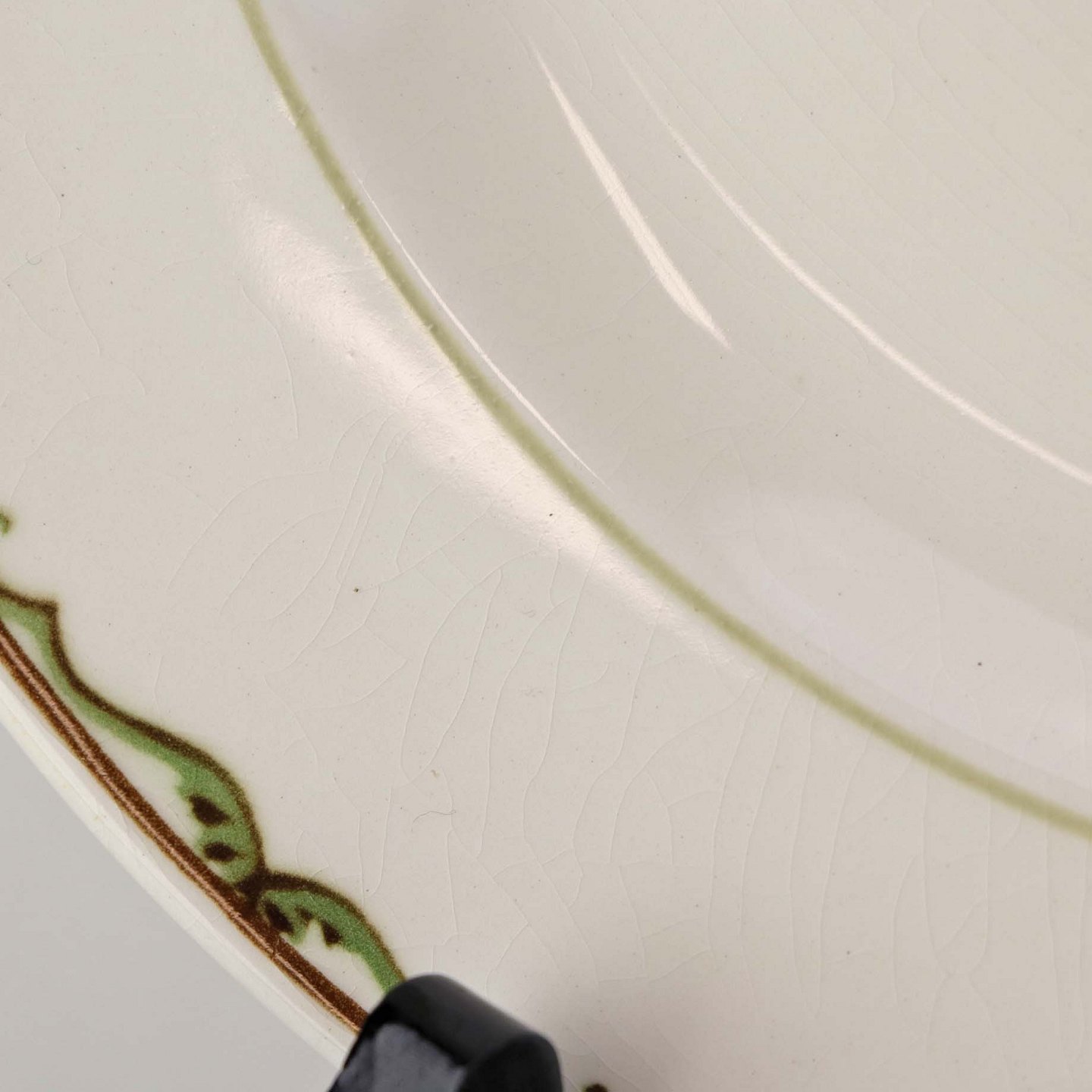 Fremstår med krakkeleringer i glasuren.