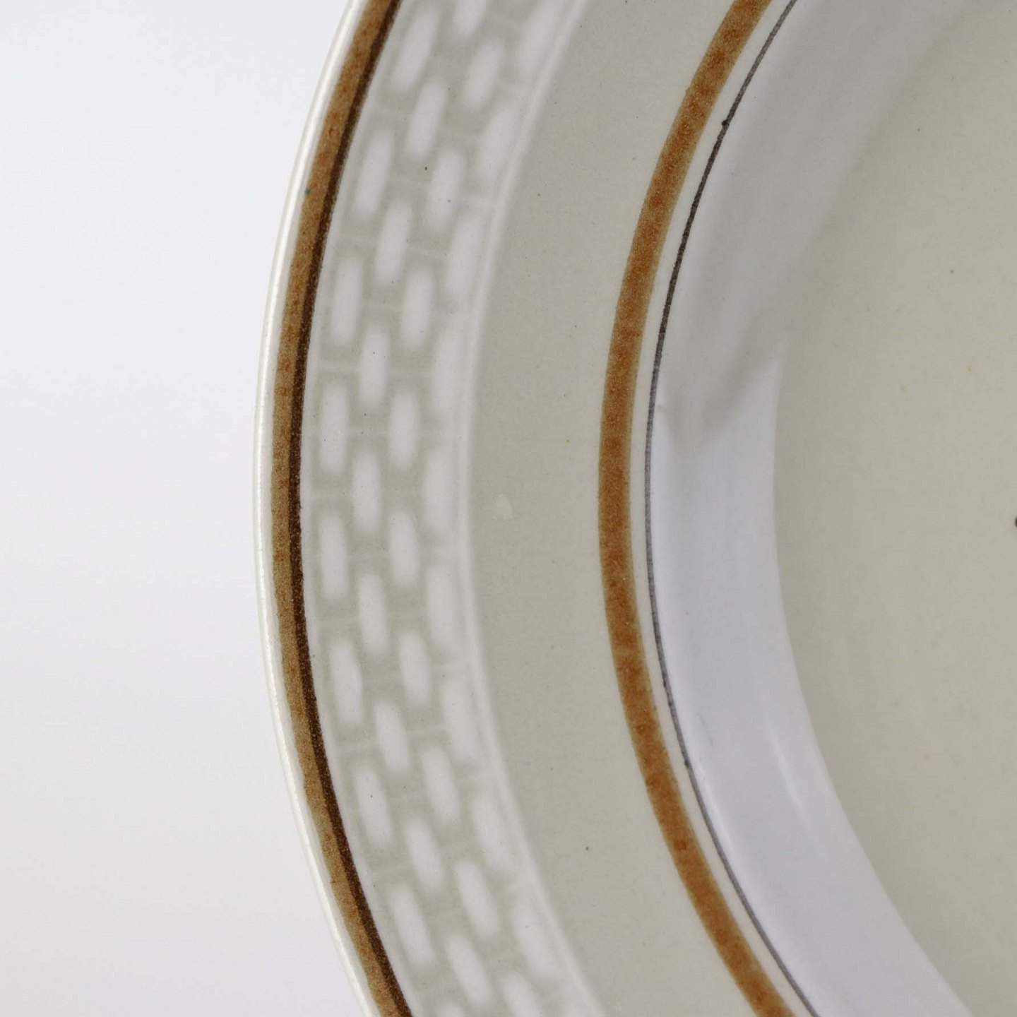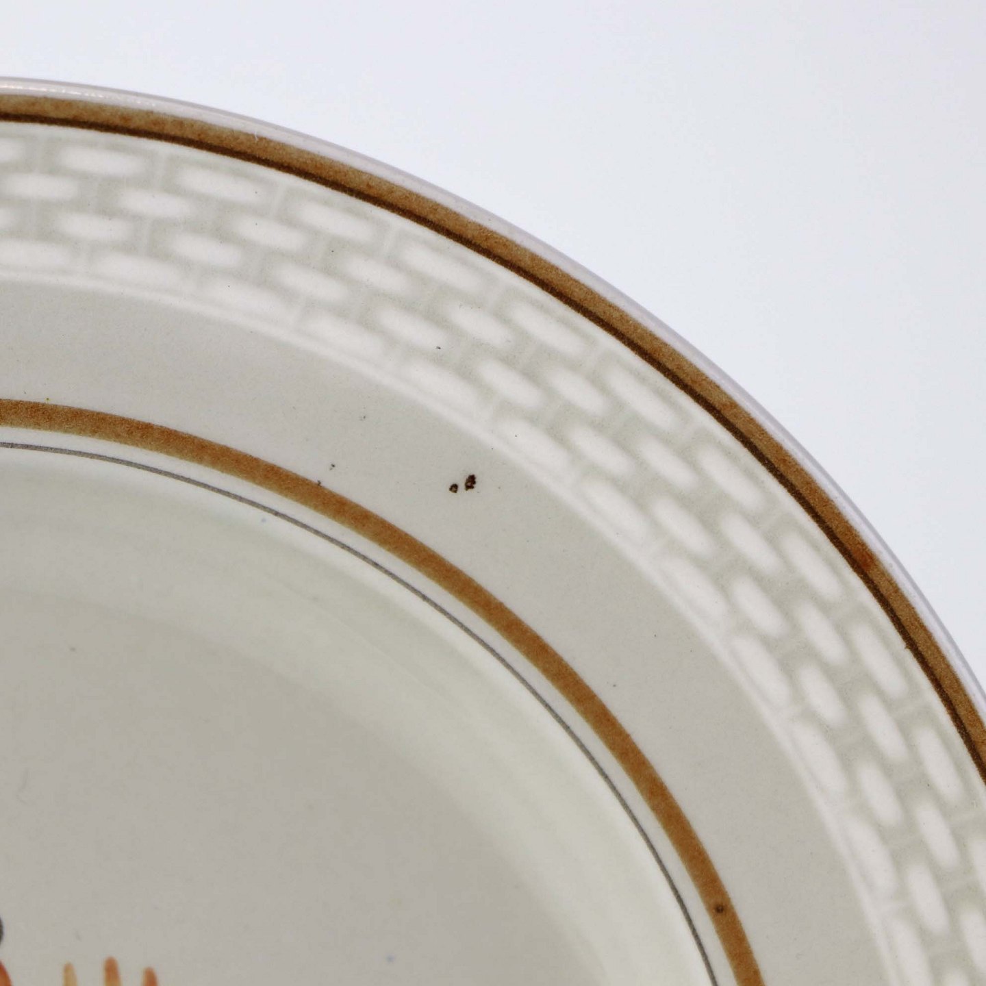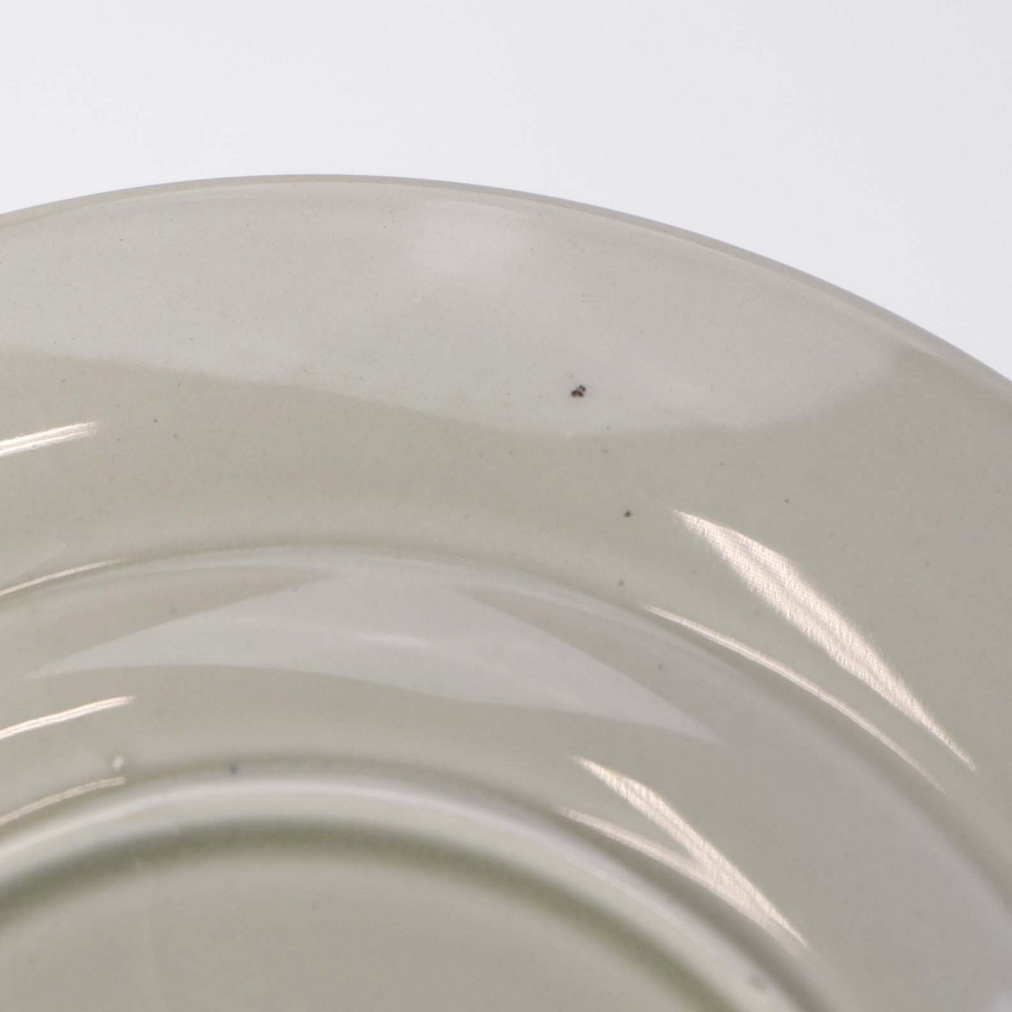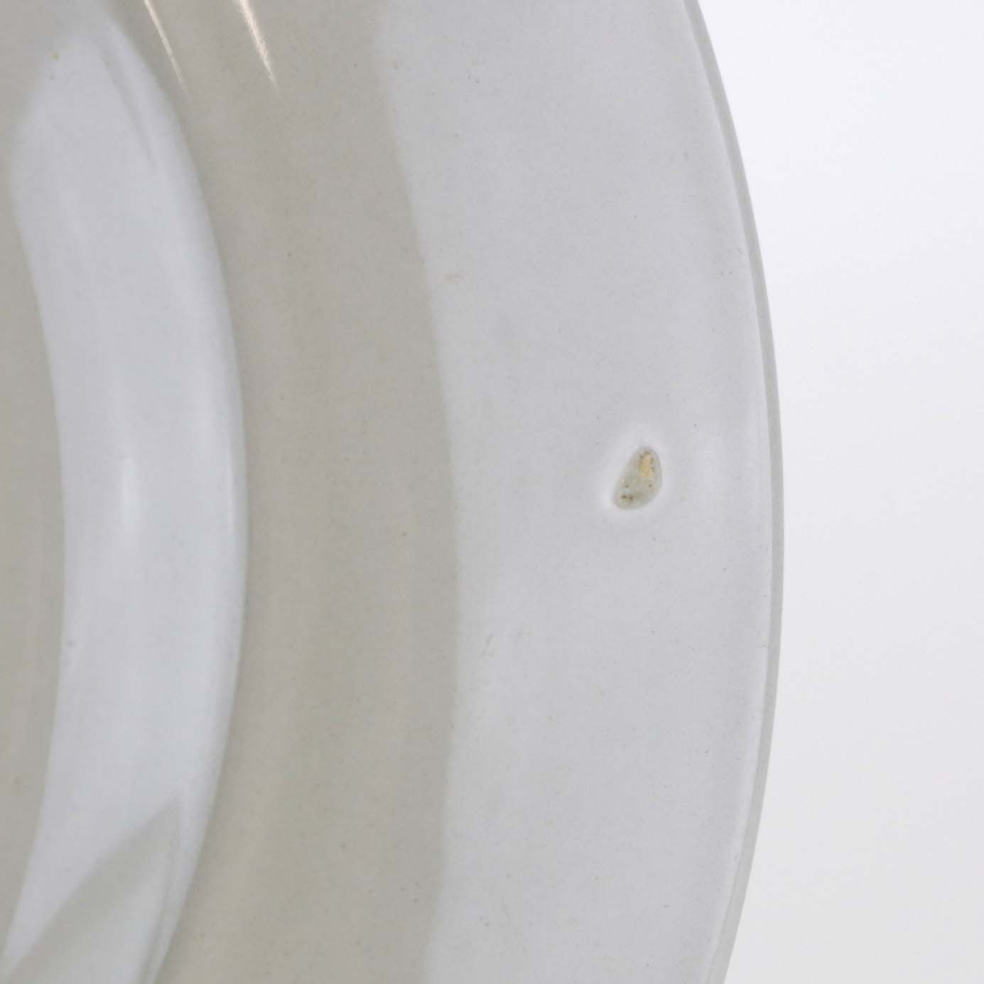 Fremstår med sorte nister under glasuren samt ujævnhed på bagsiden.