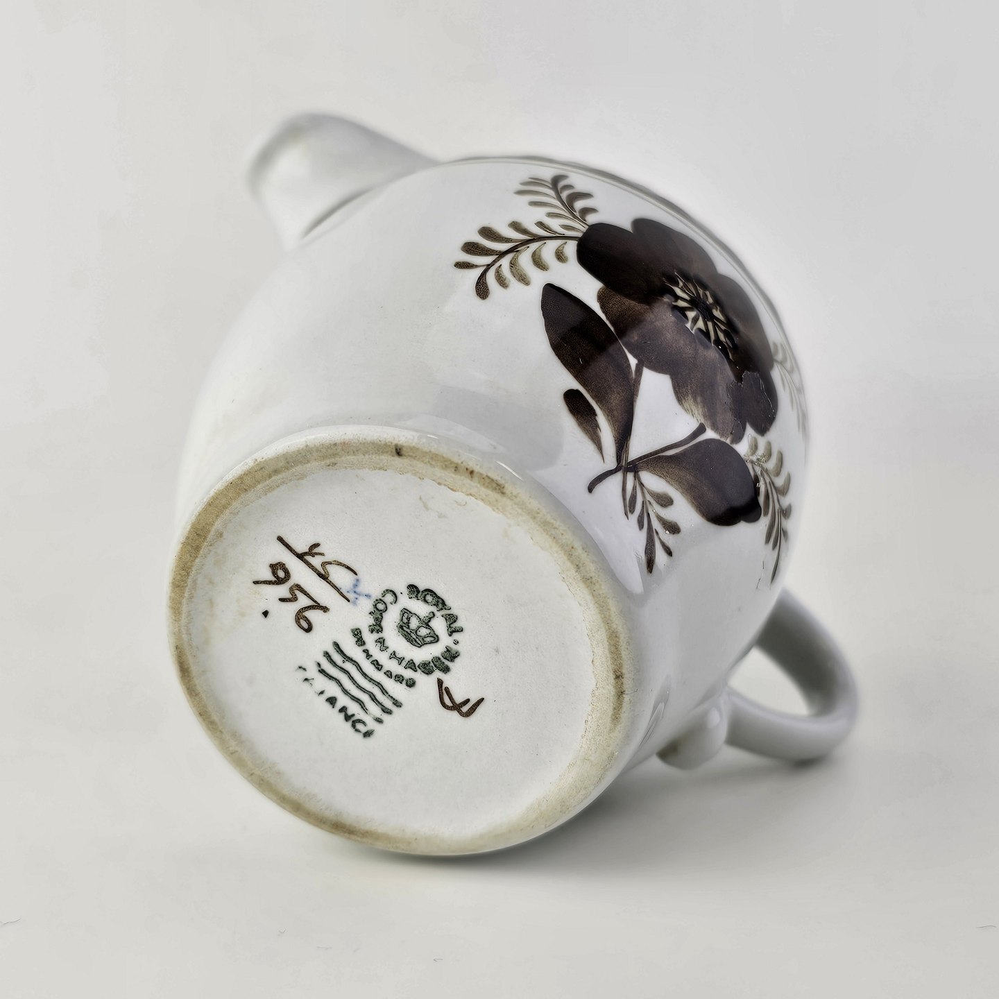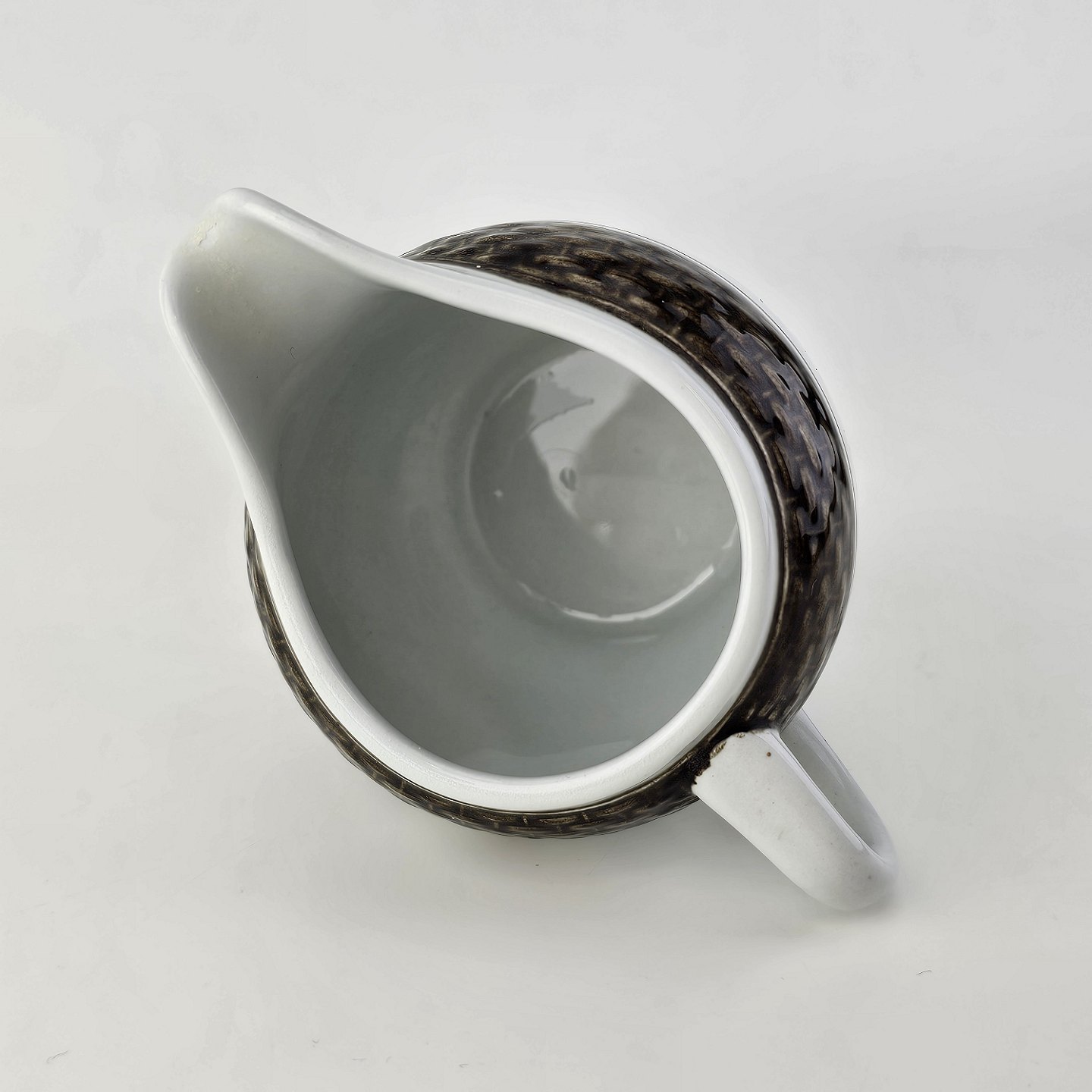 Flødekande i fajance fra stellet Brun Tranquebar fra år 1919