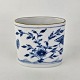 Stel i hvidt porcelæn med guldkant med blå motiver af blomster og sommerfugle.