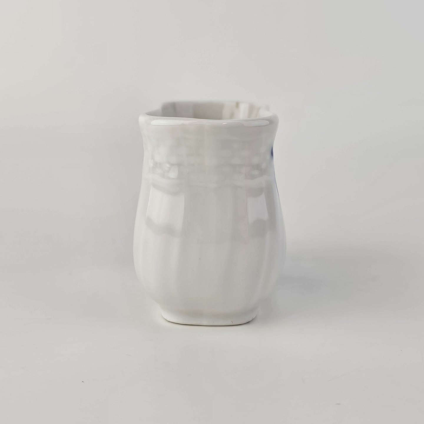 Glat hvidt porcelæn dekoreret med blå blomster