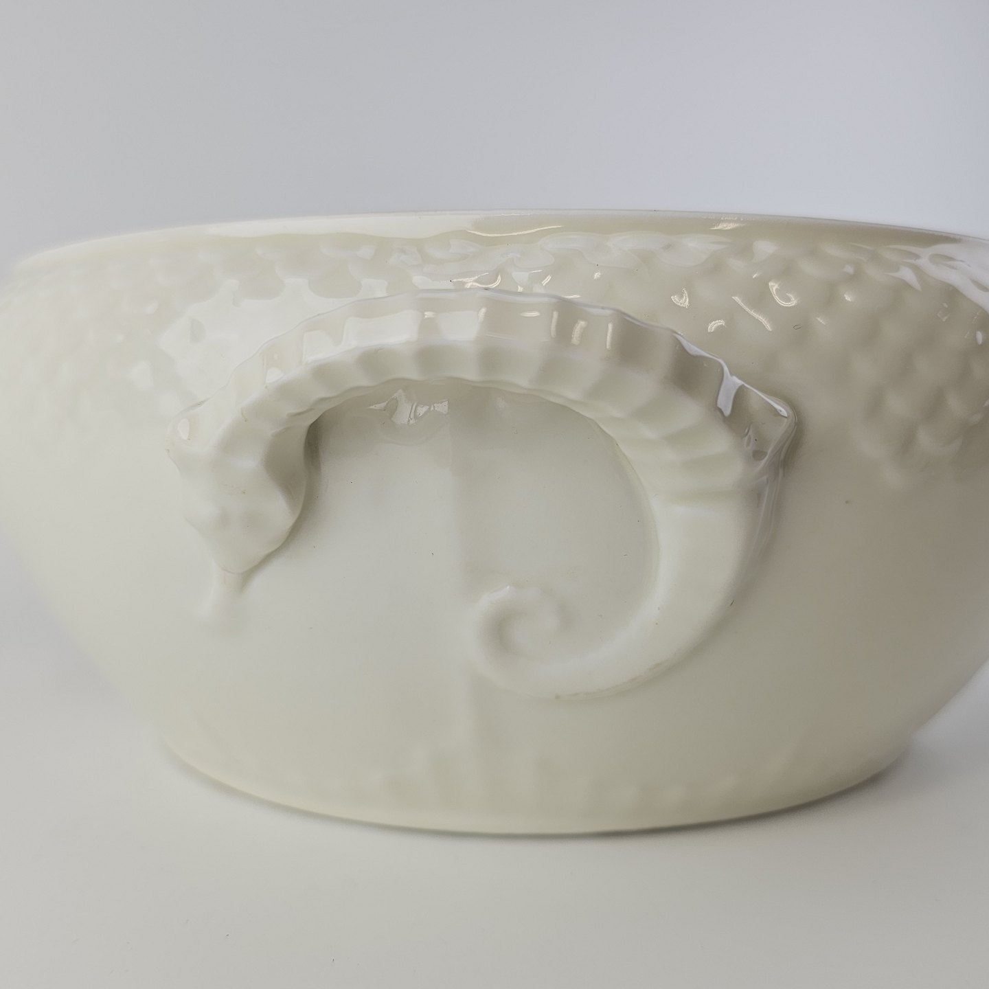 Elegance er cremefarvet glaseret porcelæn med skæl mønster