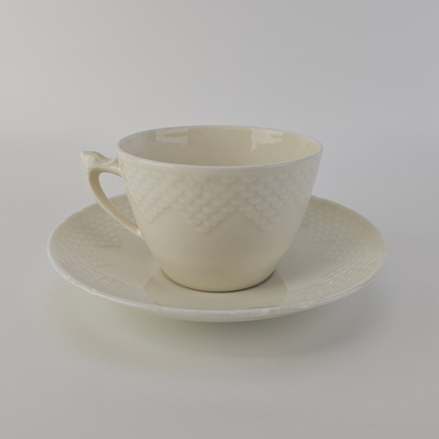 Elegance er cremefarvet glaseret porcelæn med skæl mønster