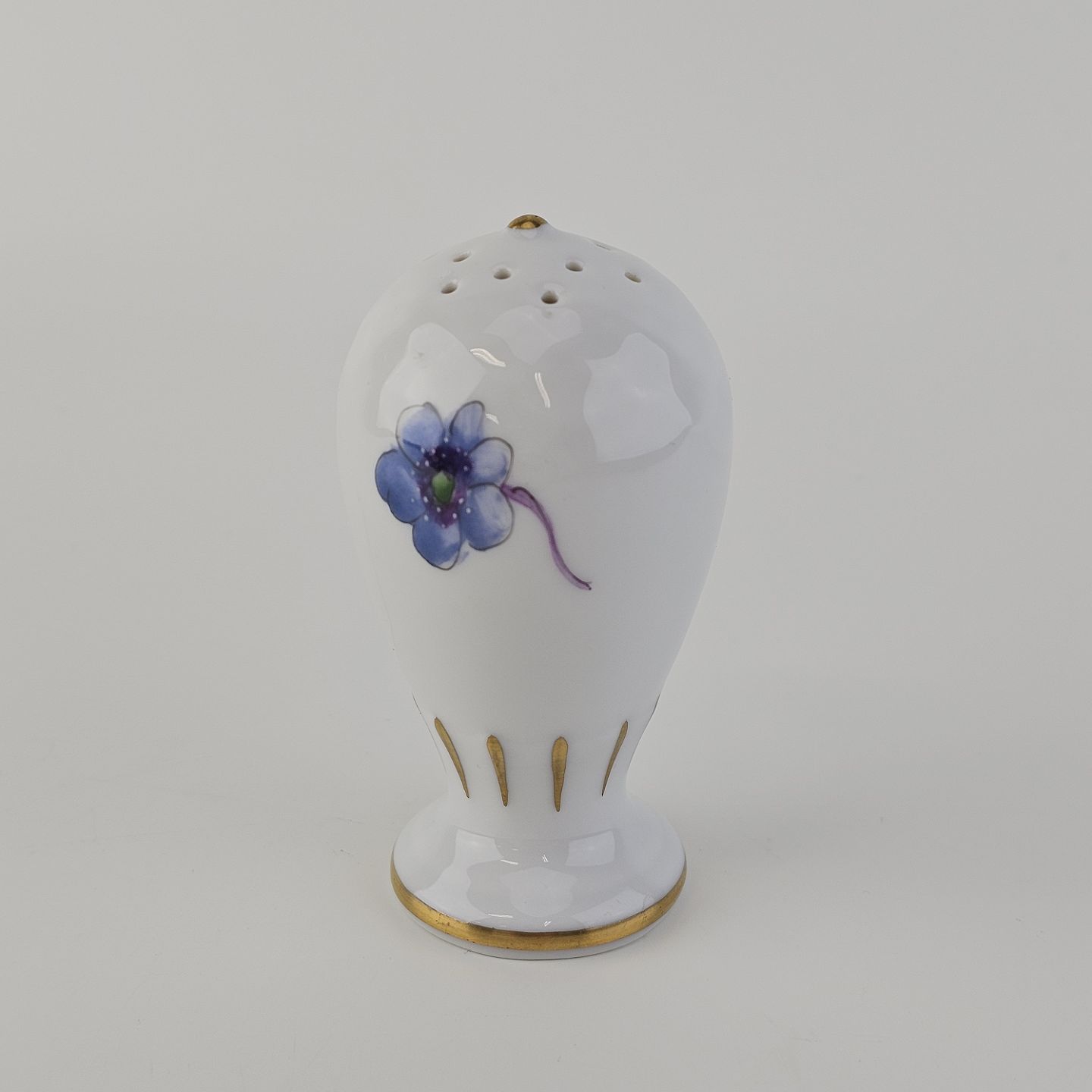 Antonius er af hvidt porcelæn med skælform dekoreret med håndmalede blå anemoner og guldkant. Også kendt under navnet Blå Anemone.