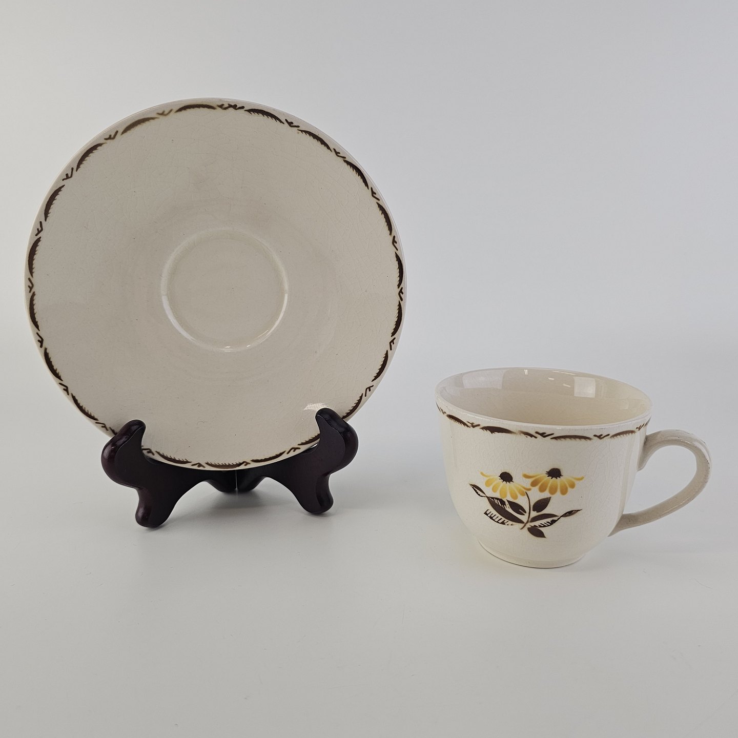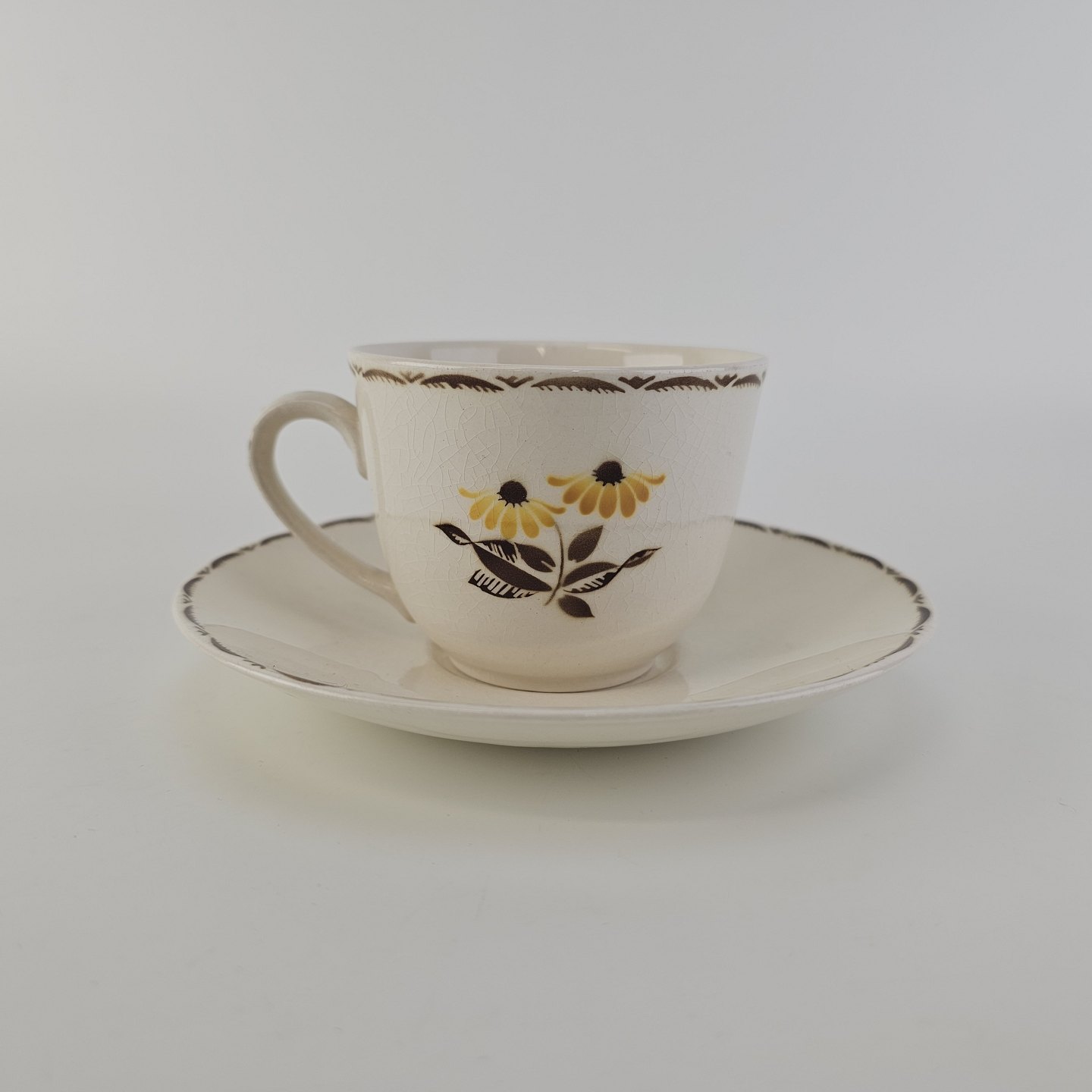 Kaffekop med underkop i fajance fra stellet Birthe