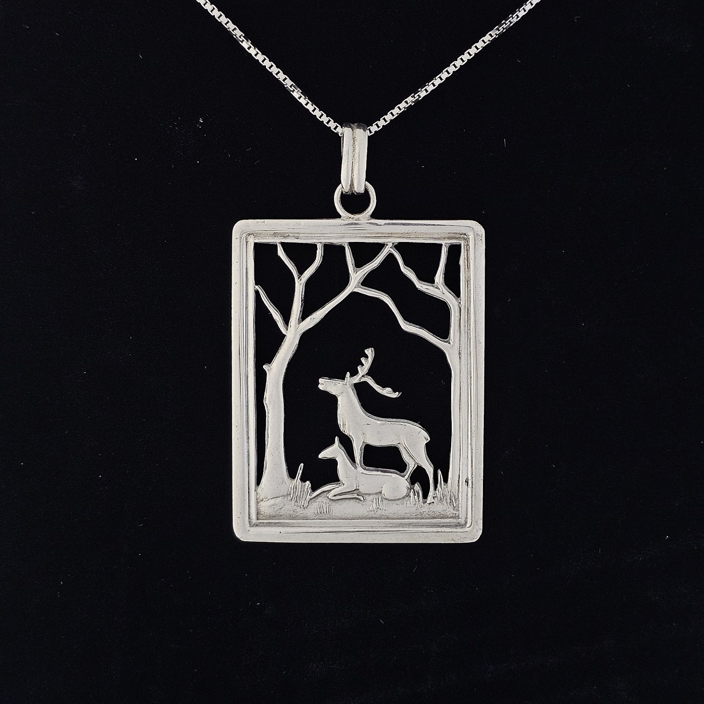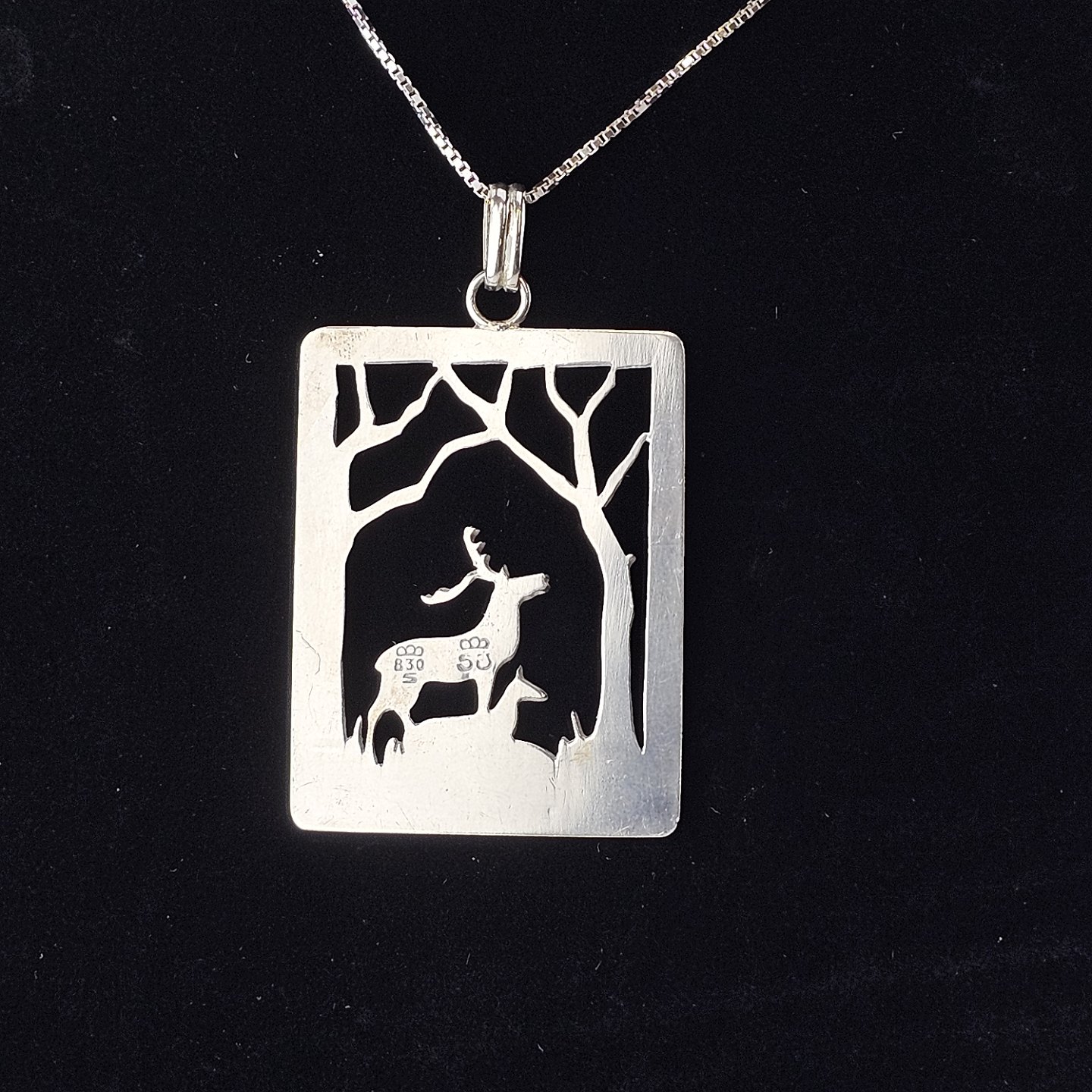 Sølv vedhæng motiv af hjort og træ