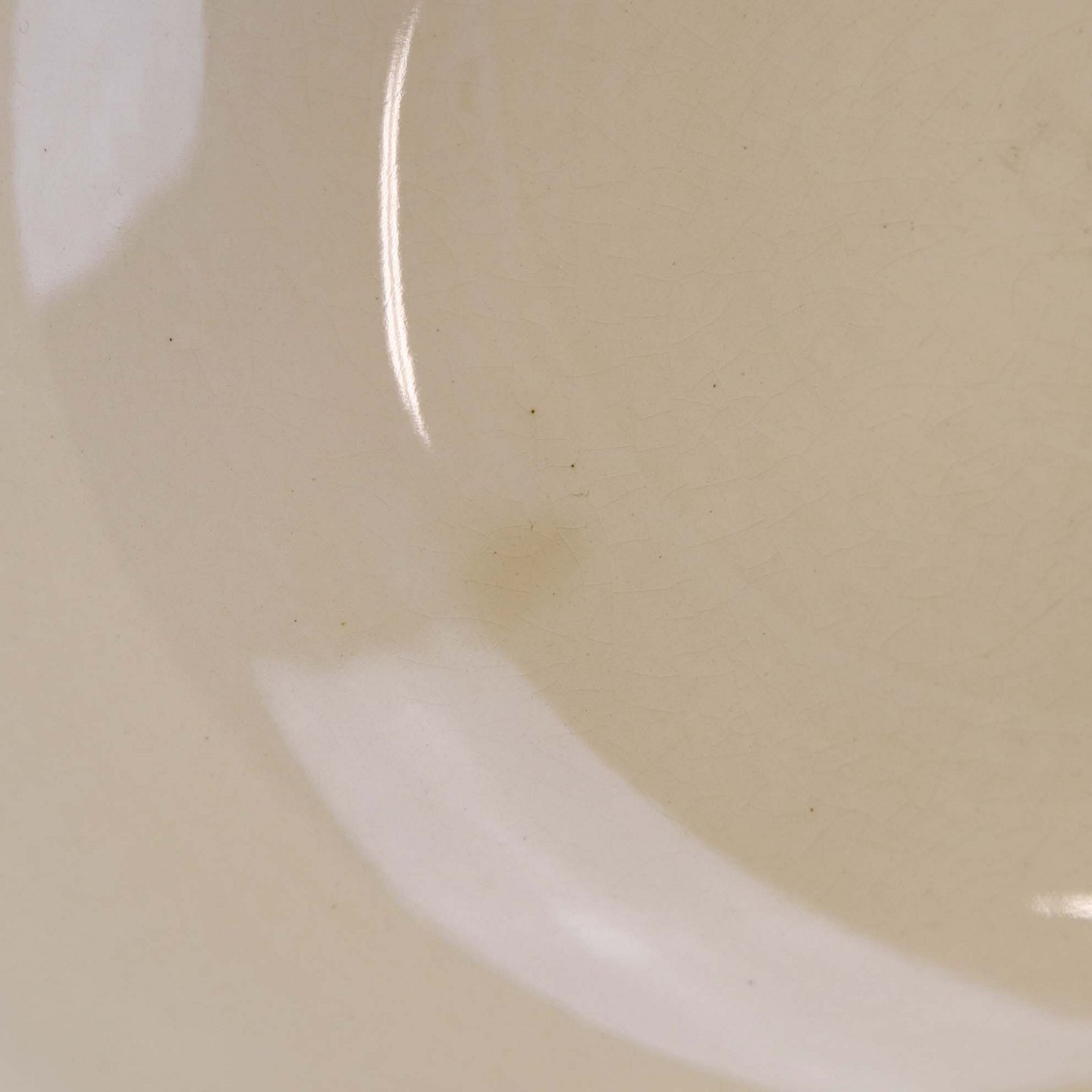 Fremstår med bruneringer under glasuren og krakkeleringer i glasuren.