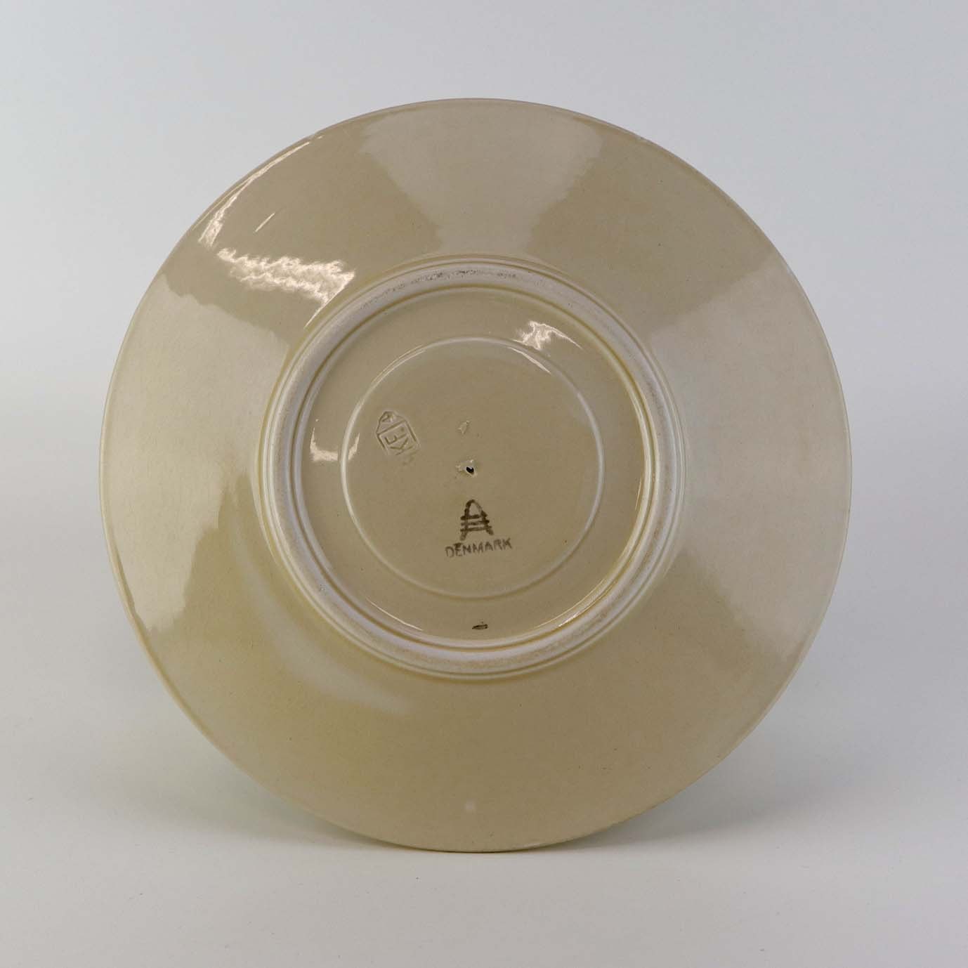 Sovseskål med fast bund i fajance fra stellet Asserbo fremstillet i perioden 1933-1965